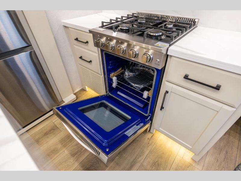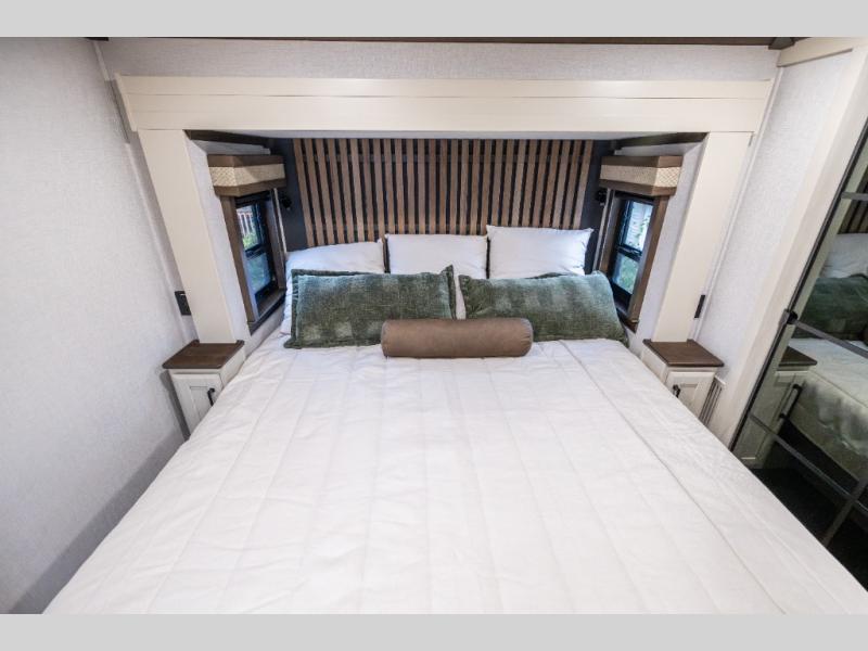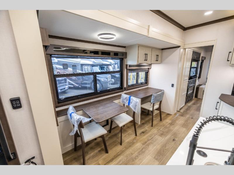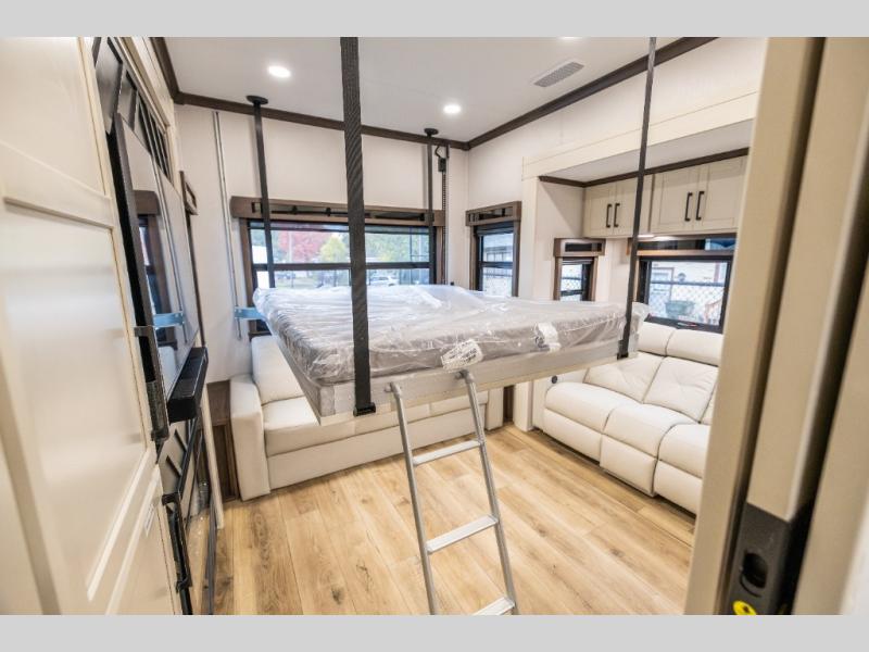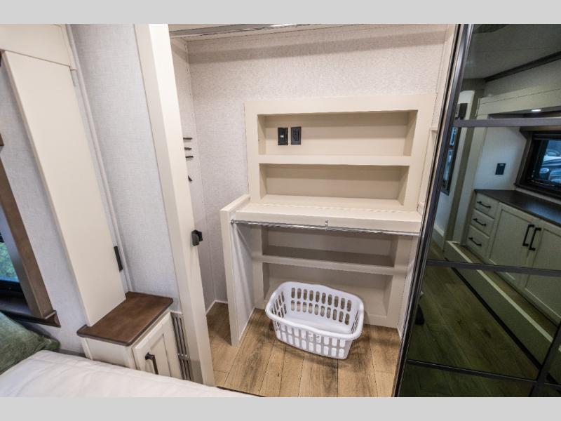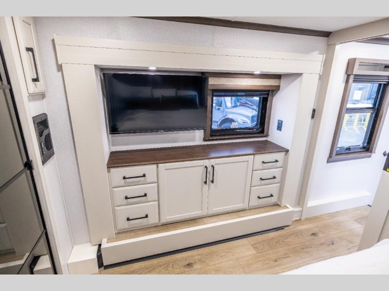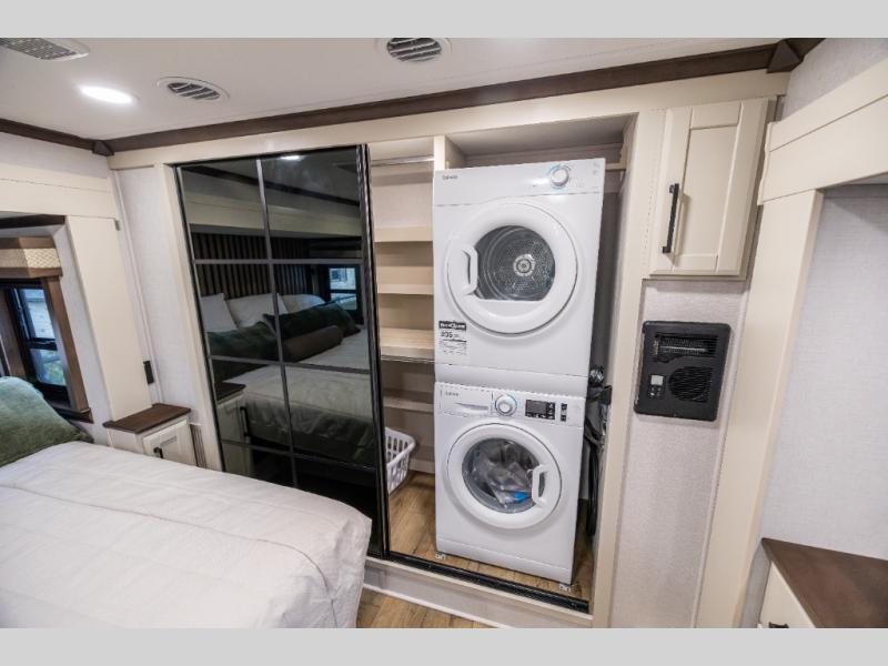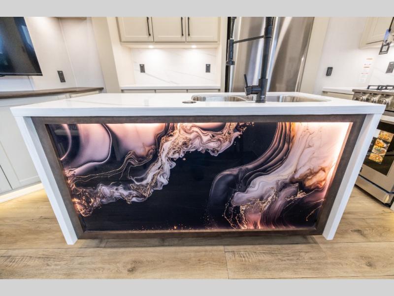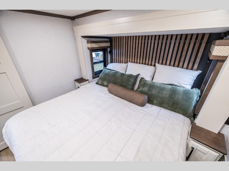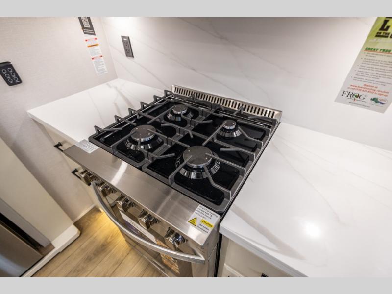 The Forest River RiverStone fifth wheels and toy haulers are luxurious units that have it all! You'll find an automatic six-point hydraulic level-up system to keep your unit in place, and there is preparation for a four-camera observation system. The TravlFi Journey XTR 4G/LTE router and WiFi extender will help you stay connected to the outside world, and you'll never have to overpack again since the Splendid “Astral” stackable washer and dryer will let you clean the small amount of clothes you've brought with you. Another high luxury is the Fischer Paykal dishwasher which will allow you to spend more time enjoying your camp life and less time cleaning up. Each unit is built with a LCI Road Armour suspension system, dual-pane frameless windows, a full docking station, a 200W solar panel, and a BMPro touch control system.