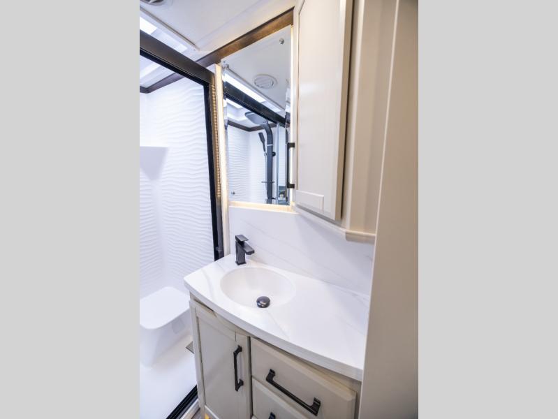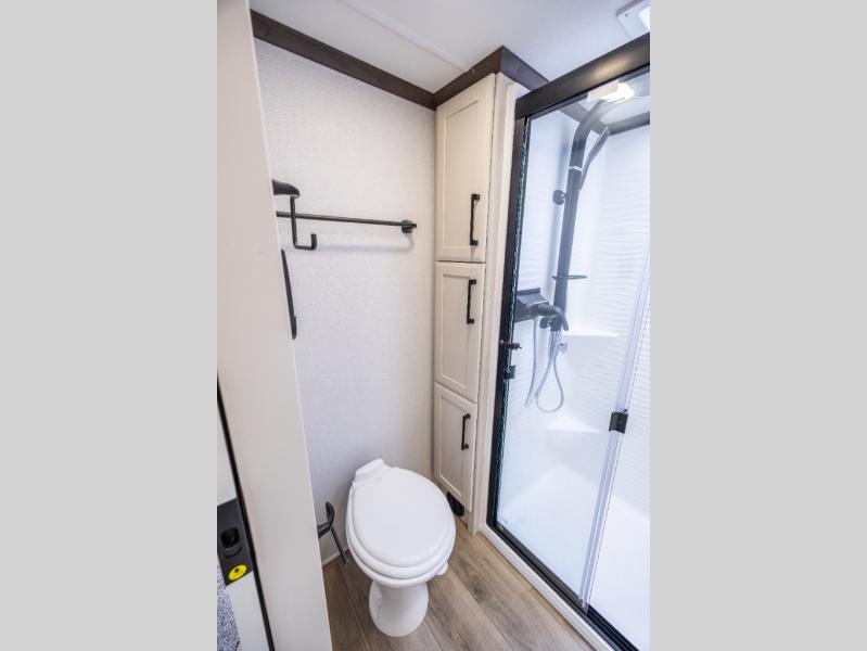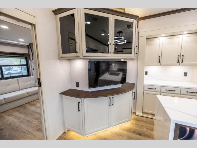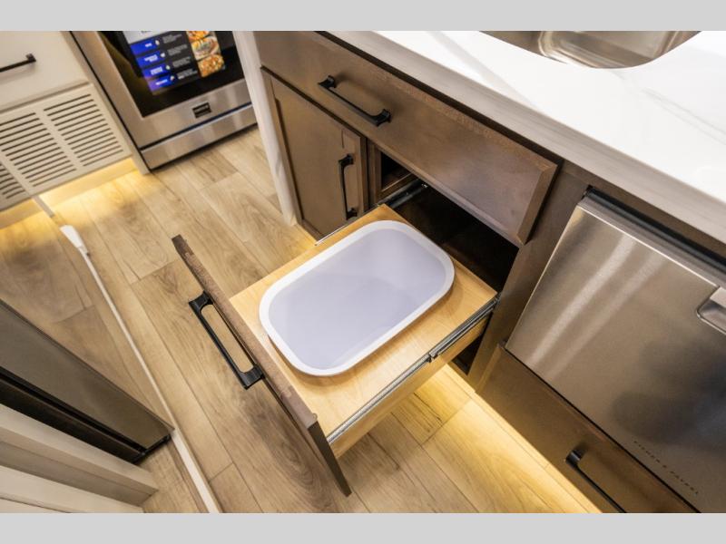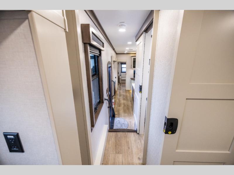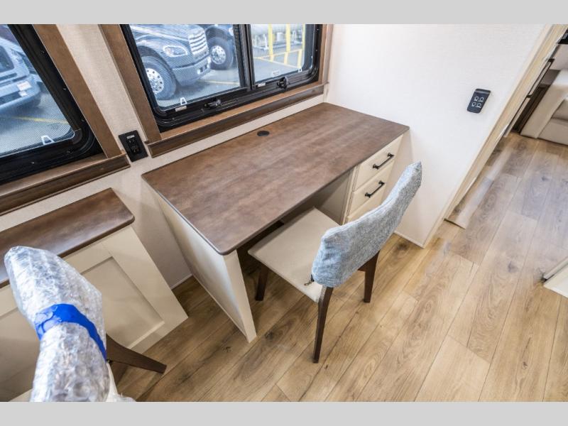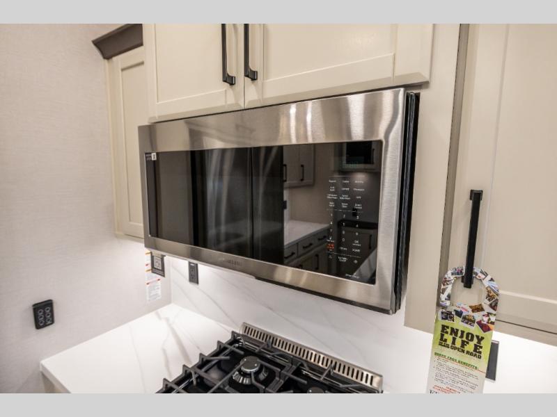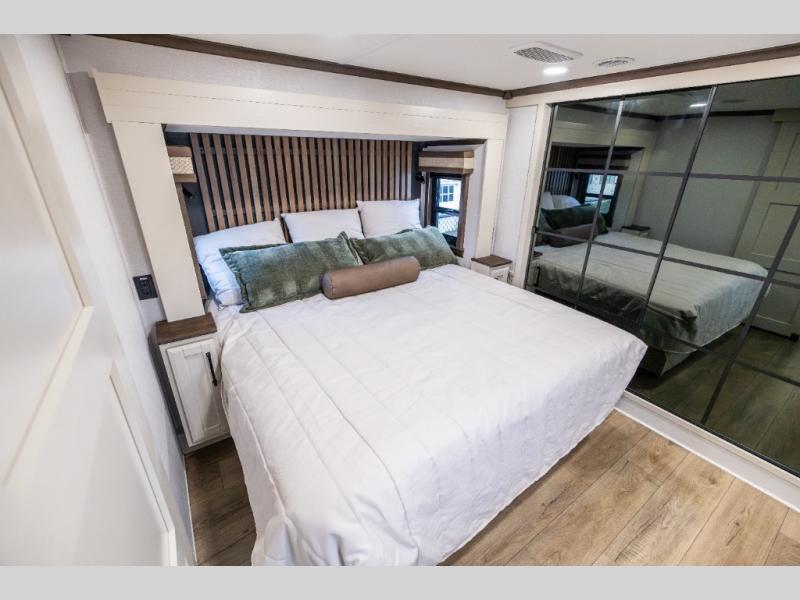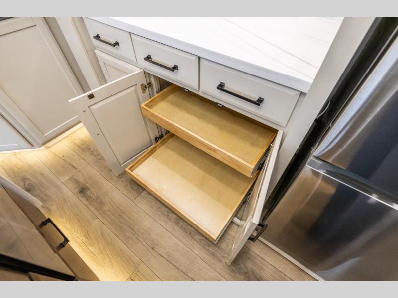 The Forest River RiverStone fifth wheels and toy haulers are luxurious units that have it all! You'll find an automatic six-point hydraulic level-up system to keep your unit in place, and there is preparation for a four-camera observation system. The TravlFi Journey XTR 4G/LTE router and WiFi extender will help you stay connected to the outside world, and you'll never have to overpack again since the Splendid “Astral” stackable washer and dryer will let you clean the small amount of clothes you've brought with you. Another high luxury is the Fischer Paykal dishwasher which will allow you to spend more time enjoying your camp life and less time cleaning up. Each unit is built with a LCI Road Armour suspension system, dual-pane frameless windows, a full docking station, a 200W solar panel, and a BMPro touch control system.