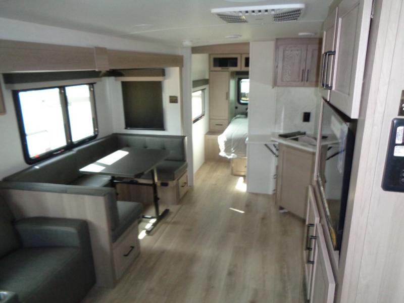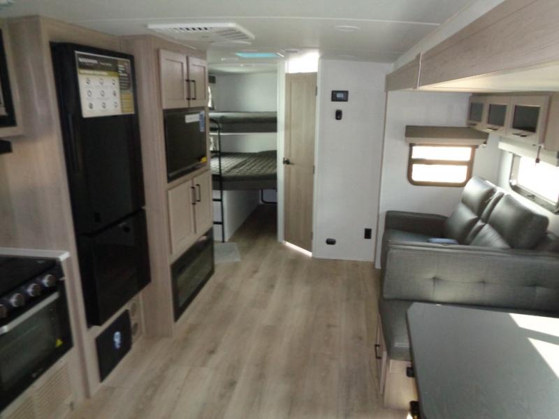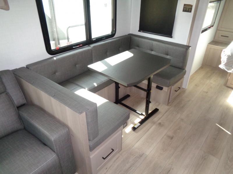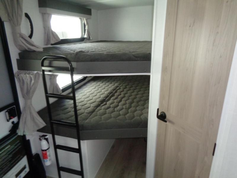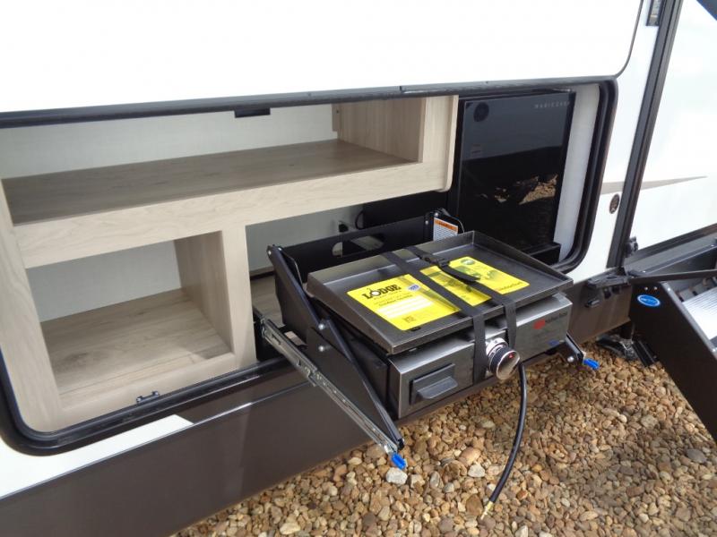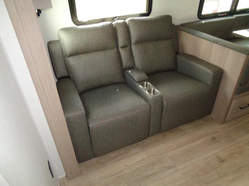 Looking for a trailer that sleeps eight, allows you to cook indoors or outdoors, and provides added interior space? This trailer provides for those wants and needs, and even more! The outside kitchen gives you more choices when feeding the masses along with the outside griddle, and the interior kitchen includes an L-shaped area for the cook to have their own space with full amenities including a walk-in pantry to bring along everything they need. The full bathroom will keep everyone refreshed, and the theater seating and U-shaped dinette offer seating inside to enjoy the Smart TV and fireplace. There is plenty of storage found throughout the interior, and along the exterior you will find several places to stow your outdoor items including in the pass thru storage with an optional steel sliding tray. There is even a front door option if you prefer to have dual entry doors!