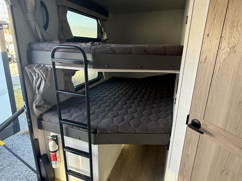 Looking for a trailer that sleeps eight, allows you to cook indoors or outdoors, and provides added interior space? This trailer provides for those wants and needs, and even more! The outside kitchen gives you more choices when feeding the masses along with the outside griddle, and the interior kitchen includes an L-shaped area for the cook to have their own space with full amenities including a walk-in pantry to bring along everything they need. The full bathroom will keep everyone refreshed, and the theater seating and U-shaped dinette offer seating inside to enjoy the Smart TV and fireplace. There is plenty of storage found throughout the interior, and along the exterior you will find several places to stow your outdoor items including in the pass thru storage with an optional steel sliding tray. There is even a front door option if you prefer to have dual entry doors!