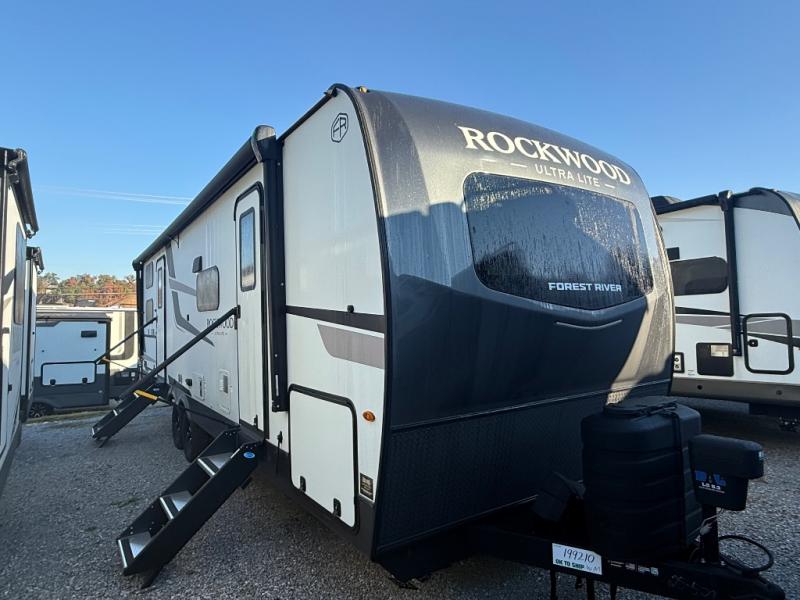 Each Rockwood Ultra Lite travel trailer by Forest River includes superior construction with a high gloss fiberglass cap, aluminum cage construction, and a power awning with LED lighting for a cozy and functional outdoor space. The torsion axle, power tongue jack will make towing smooth and hassle-free, along with the nitrogen filled, Goodyear Endurance tires and the tire pressure monitor system. Interior comforts include kitchen sink with high rise faucet, hidden hinge cabinet doors, and roller shades to name a few. Choose a Rockwood Ultra Lite travel trailer today!