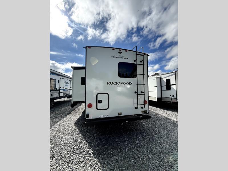 With any Rockwood Signature fifth wheel or travel trailer by Forest River RV, you will enjoy superior construction that includes a fully laminated walkable roof, 6-sided full-aluminum frame, and a painted fiberglass front cap with Clear Coat for added durability. Outside, you'll find a 200W solar panel for off-grid capabilities, slam baggage doors, and Key-Alike lock system for added convenience. Head inside to find soft close roller bearing drawers, roller shades, and residential style gas range. These travel trailer and fifth wheels also feature Goodyear Endurance tires with a tire pressure monitoring system plus Dexter Torflex torsion axles for smooth towing!