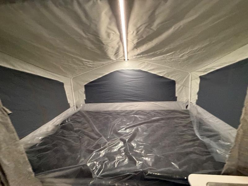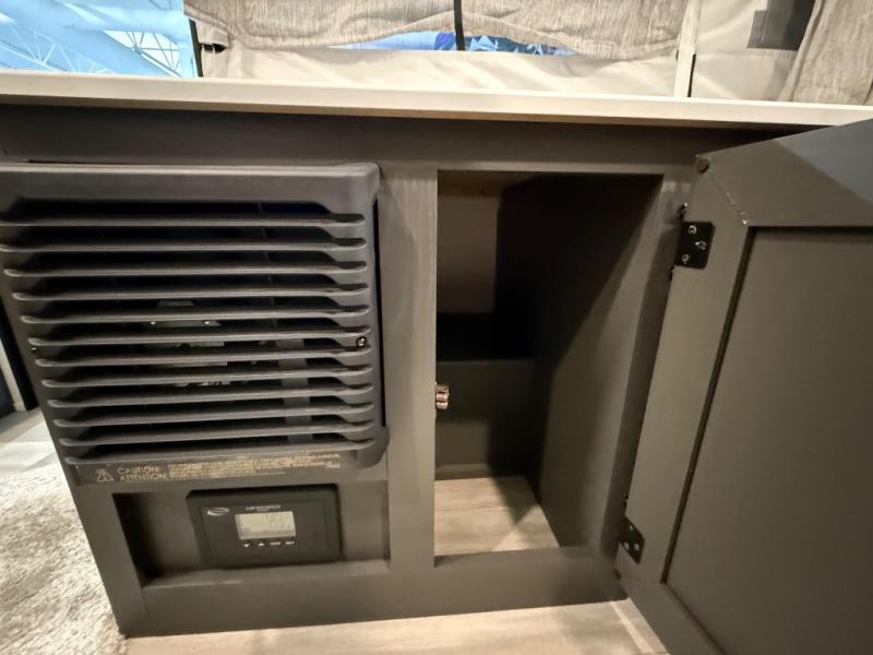 This compact camper will be perfect for outdoor trips to your favorite campground. There are two tent end beds for sleeping space, along with an L-shaped seat with a table for dining space. An extra guest or two little ones could even sleep here at night! The exterior griddle will let you make meals each day, and the 12V refrigerator will keep perishables fresh. This unit also includes an indoor sink so you can wash dishes and brush your teeth at night, and there is a 7' awning outdoors to enjoy some shade!