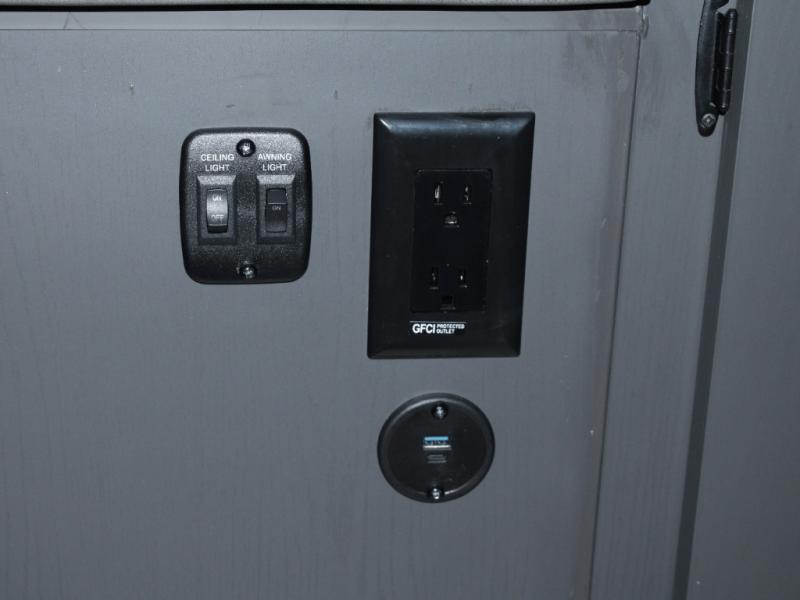Cooking outdoors is a breeze with the exterior griddle, allowing you to enjoy meals in the fresh air. Relax outside under the 7-foot awning, providing shade and comfort at your campsite.