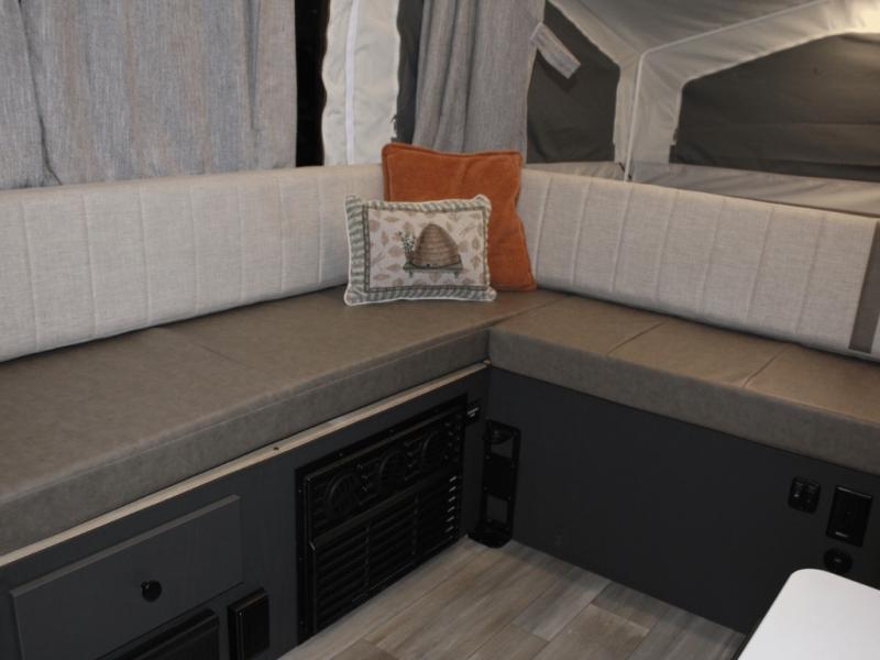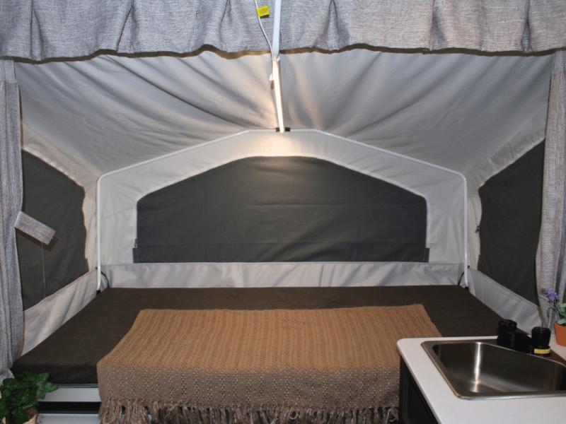 Comfort continues inside with a 15,000 BTU under-bunk air conditioner, 20,000 BTU furnace, and MaxxAir fan to keep air circulating. Additional conveniences include a one-piece screen door and two 20 lb. LP bottles, making this pop-up camper fully equipped for memorable adventures.