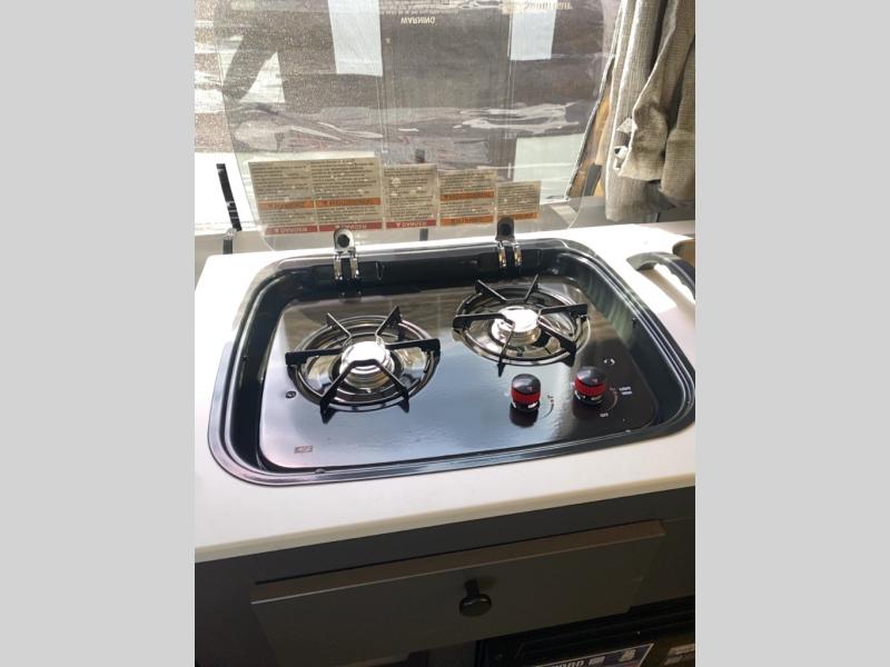 This Rockwood Freedom Series folding pop-up camper is going to let you camp in freedom! You will be able to use the permanently mounted three burner range to cook up some delicious food, and the 9' awning with an LED light will keep you protected while you work. You will also find that the booth dinette with added seating will be useful for both meal time and bed time when the two tent end beds aren't enough space, and the storage lid under the front bed provides storage for luggage, blankets, and more!
