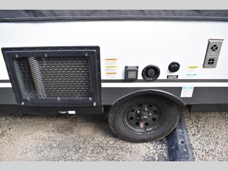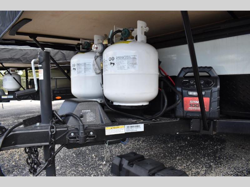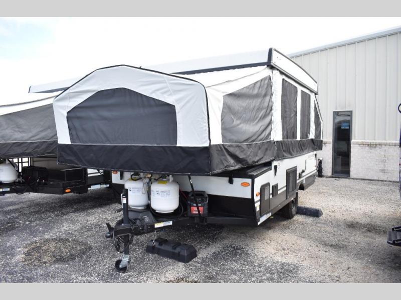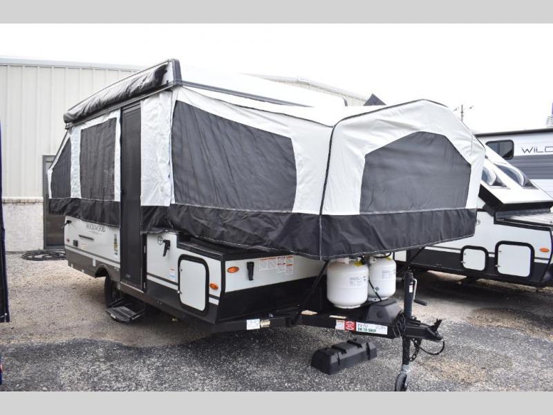 With any Rockwood Freedom Series by Forest River, you will enjoy added features to make each excursion one to remember. These folding pop-up campers feature a fiberglass laminated roof, wood plank flooring, and a two tone fiberglass exterior. The Dexter sprung axles, electric brakes, and radial tires with nitrogen will make towing easier than ever, plus there are four stabilizer jacks with sand pads to help keep your unit secure. Each model also includes an awning with LED lighting outdoors, along with a one-piece screen door, two 20 lb. LP bottles, and a power roof lift to have you set up in no-time. Inside, the 15K under-bunk A/C and 20K BTU furnace will help keep you comfortable, and the Maxxair fan will keep the air moving!
