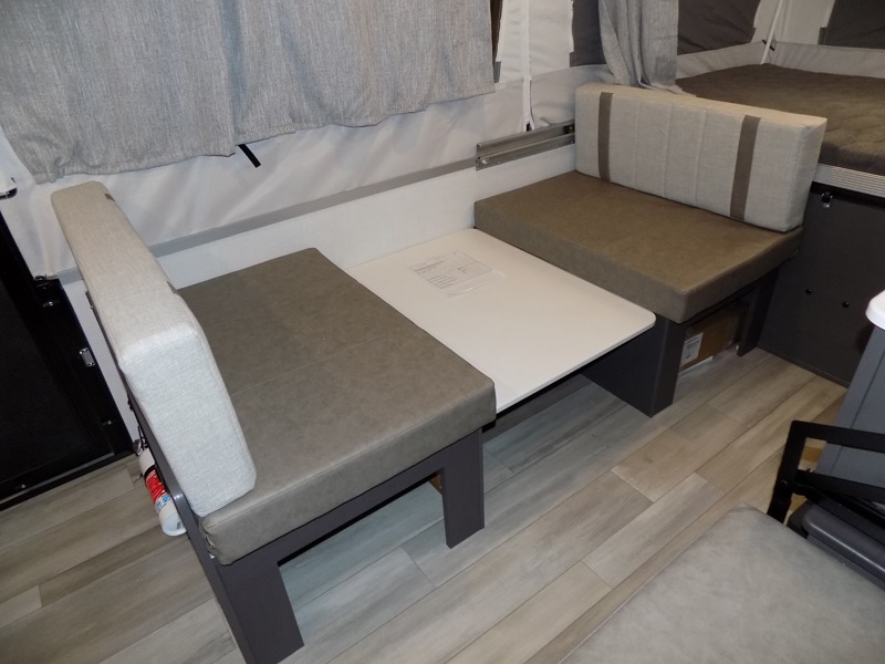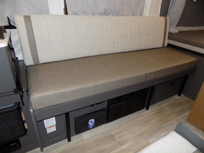 This Rockwood Freedom Series folding pop-up camper is going to let you camp in freedom! You will be able to use the outdoor griddle to cook up some delicious food, and the 9' awning with an LED light will keep you protected while you work. You will also find that the booth dinette will be useful for both meal time and bed time when the two tent end beds aren't enough space, and the storage lid under the front bed provides storage for luggage, blankets, and more!