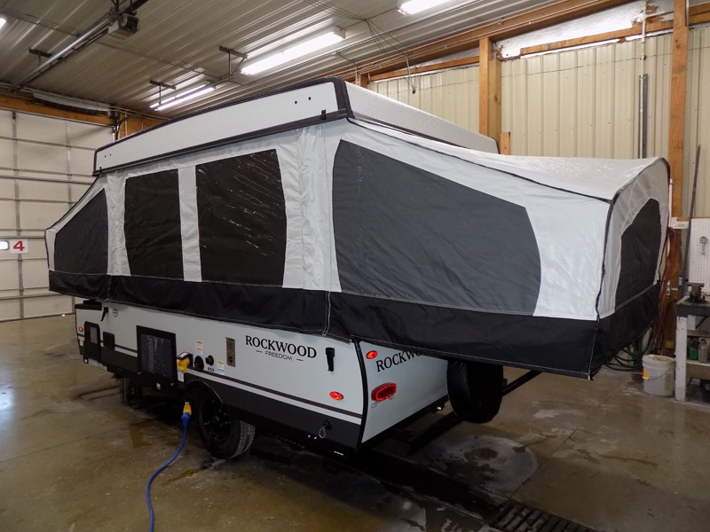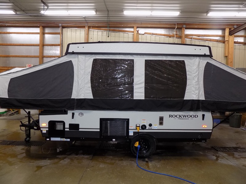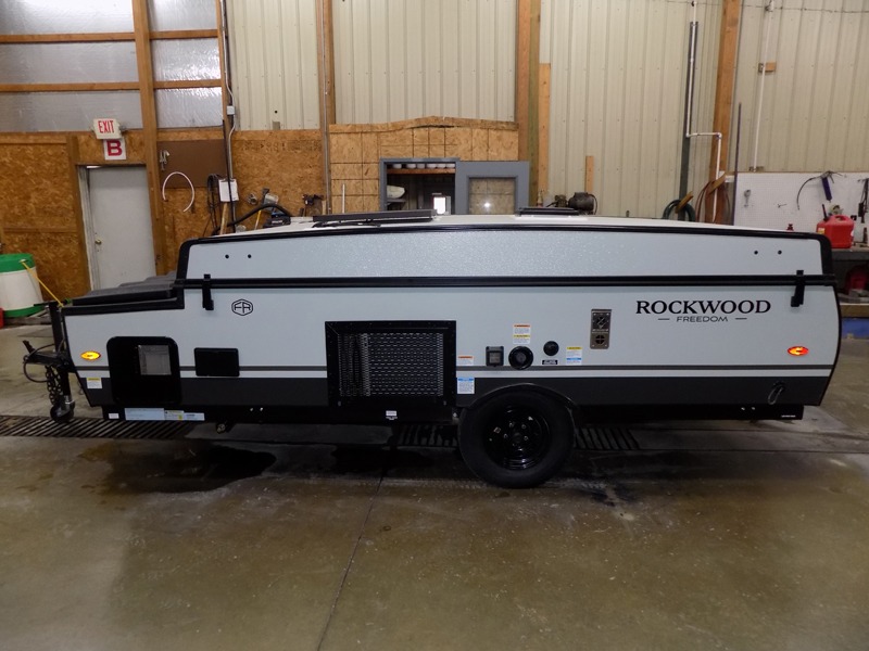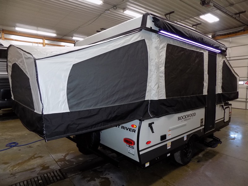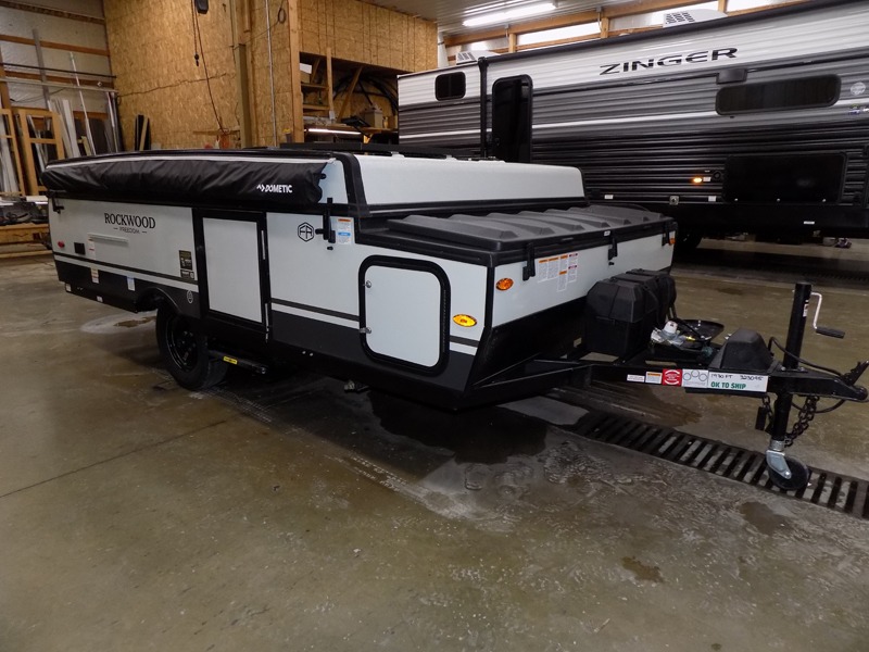 With any Rockwood Freedom Series by Forest River, you will enjoy added features to make each excursion one to remember. These folding pop-up campers feature a fiberglass laminated roof, wood plank flooring, and a two tone fiberglass exterior. The Dexter sprung axles, electric brakes, and radial tires with nitrogen will make towing easier than ever, plus there are four stabilizer jacks with sand pads to help keep your unit secure. Each model also includes an awning with LED lighting outdoors, along with a one-piece screen door, two 20 lb. LP bottles, and a power roof lift to have you set up in no-time. Inside, the 15K under-bunk A/C and 20K BTU furnace will help keep you comfortable, and the Maxxair fan will keep the air moving!