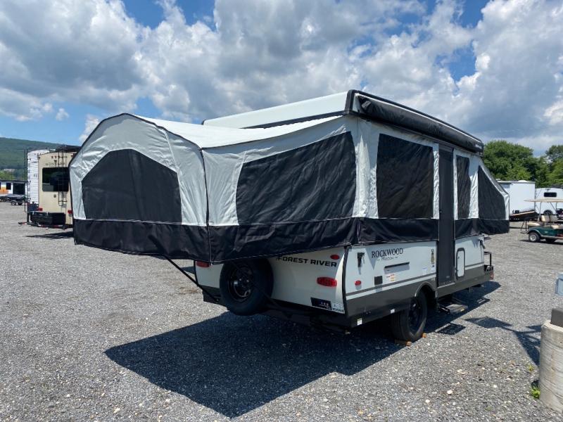With any Rockwood Freedom Series by Forest River, you will enjoy added features to make each excursion one to remember. These folding pop-up campers feature a fiberglass laminated roof, wood plank flooring, and a two tone fiberglass exterior. The Dexter sprung axles, electric brakes, and radial tires with nitrogen will make towing easier than ever, plus there are four stabilizer jacks with sand pads to help keep your unit secure. Each model also includes an awning with LED lighting outdoors, along with a one-piece screen door, two 20 lb. LP bottles, and a power roof lift to have you set up in no-time. Inside, the 15K under-bunk A/C and 20K BTU furnace will help keep you comfortable, and the Maxxair fan will keep the air moving!