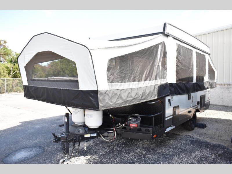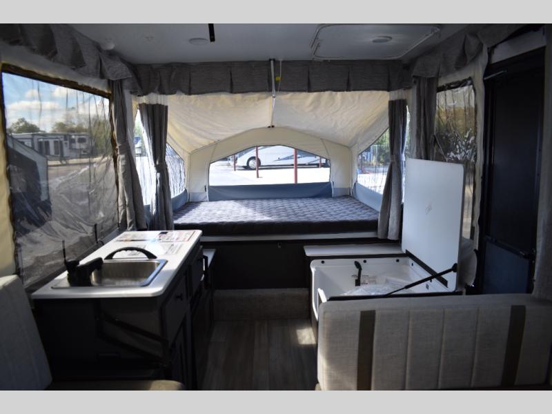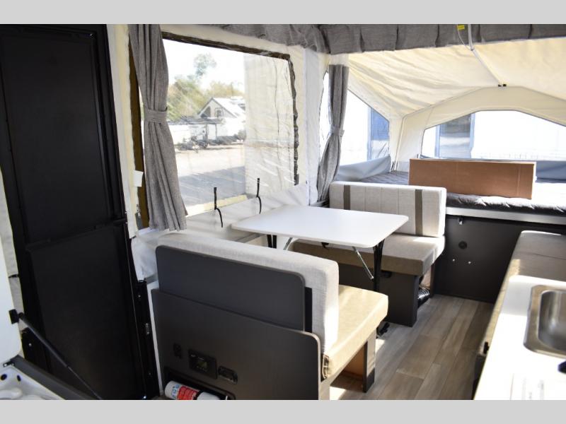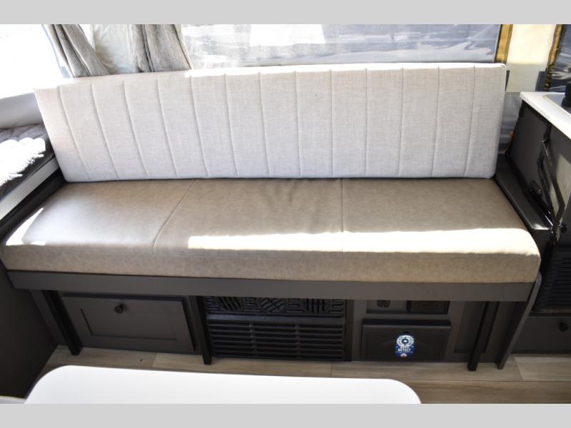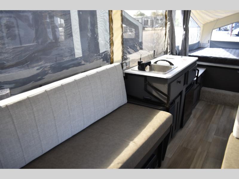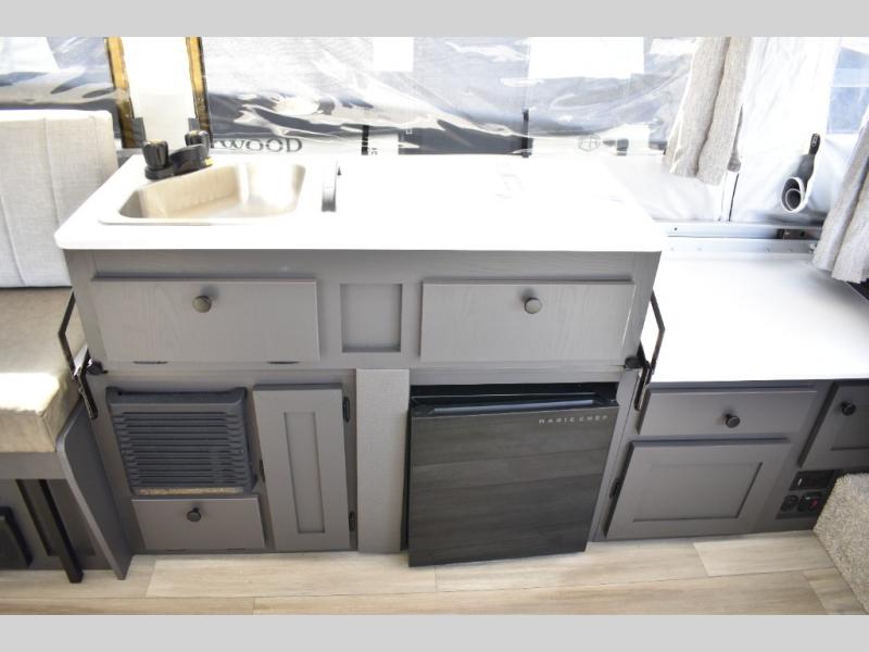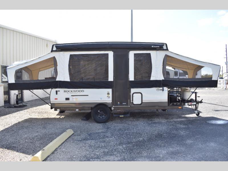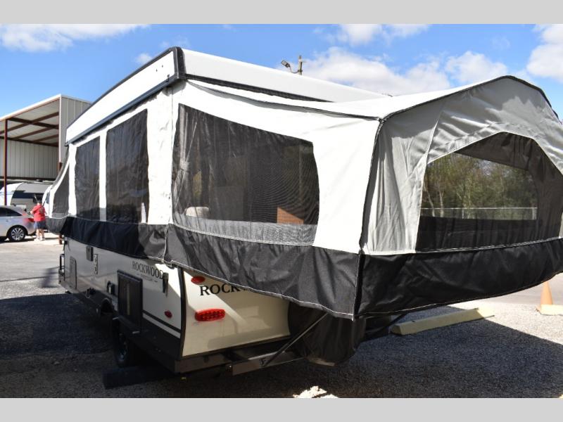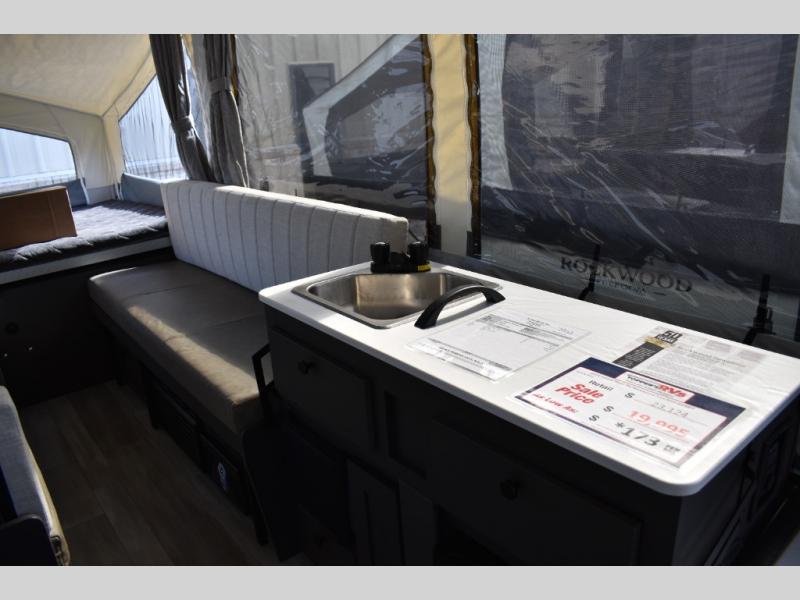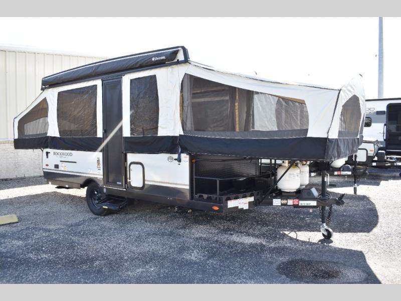 With any Rockwood Freedom Series by Forest River, you will enjoy added features to make each excursion one to remember. These folding pop-up campers feature a fiberglass laminated roof, wood plank flooring, and a two tone fiberglass exterior. The Dexter sprung axles, electric brakes, and radial tires with nitrogen will make towing easier than ever, plus there are four stabilizer jacks with sand pads to help keep your unit secure. Each model also includes an awning with LED lighting outdoors, along with a one-piece screen door, two 20 lb. LP bottles, and a power roof lift to have you set up in no-time. Inside, the 15K under-bunk A/C and 20K BTU furnace will help keep you comfortable, and the Maxxair fan will keep the air moving!