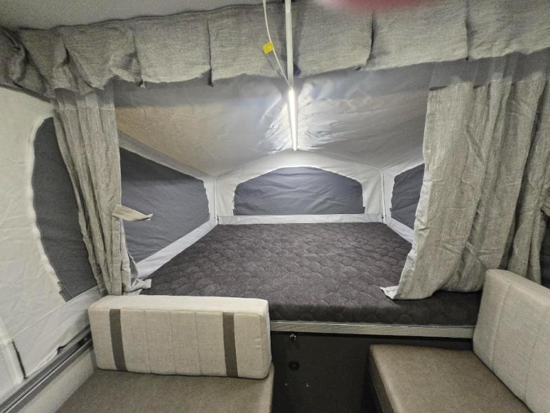 With any Rockwood Freedom Series by Forest River, you will enjoy added features to make each excursion one to remember. These folding pop-up campers feature a fiberglass laminated roof, wood plank flooring, and a two tone fiberglass exterior. The Dexter sprung axles, electric brakes, and radial tires with nitrogen will make towing easier than ever, plus there are four stabilizer jacks with sand pads to help keep your unit secure. Each model also includes an awning with LED lighting outdoors, along with a one-piece screen door, two 20 lb. LP bottles, and a power roof lift to have you set up in no-time. Inside, the 15K under-bunk A/C and 20K BTU furnace will help keep you comfortable, and the Maxxair fan will keep the air moving!