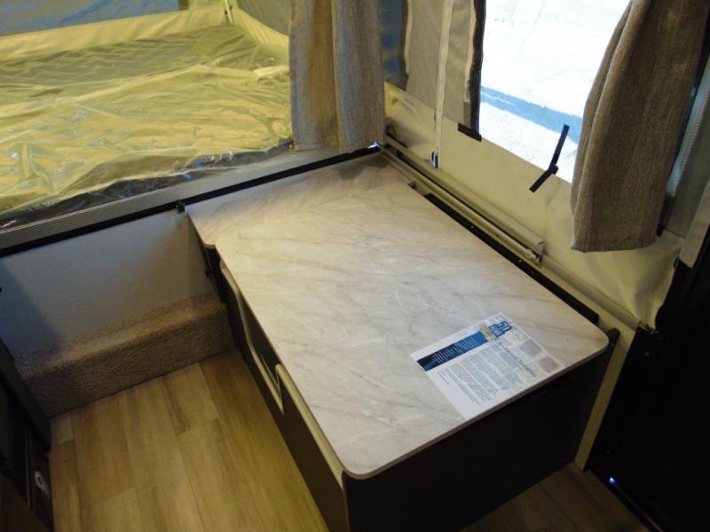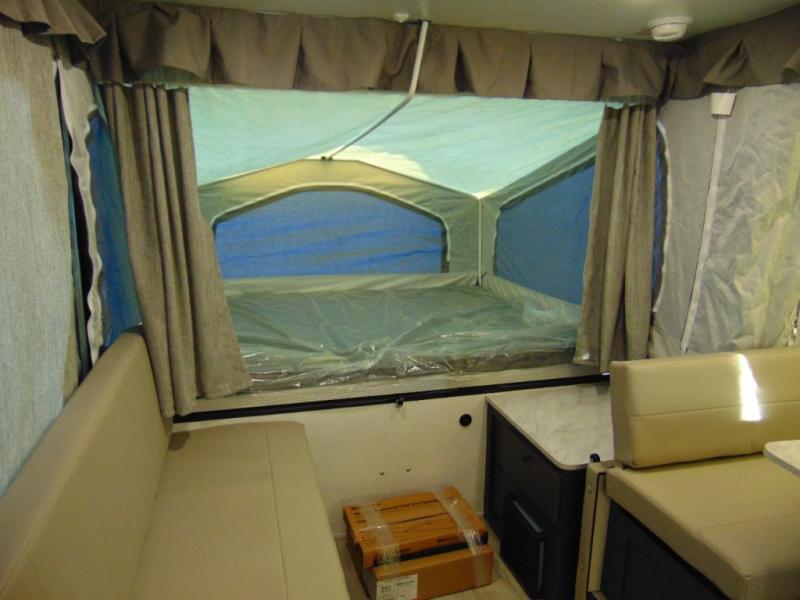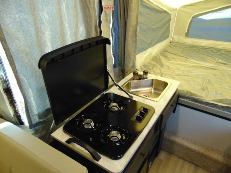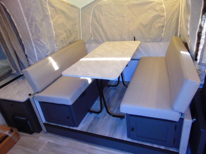 You won't have to worry about length restrictions or cumbersome towing because this Rockwood Freedom Series folding pop-up camper provides you with a lightweight and flexible alternative to heavy RVs! This camper has a single slide built into it which will deliver extra space to the interior without adding to the overall width while traveling, and the booth dinette is a functional piece of furniture that can serve as a dining table and a bed. The swing galley includes a two burner range with a cover to cook meals and a sink for easy cleaning. There is also a shower/toilet to make this unit even more convenient.