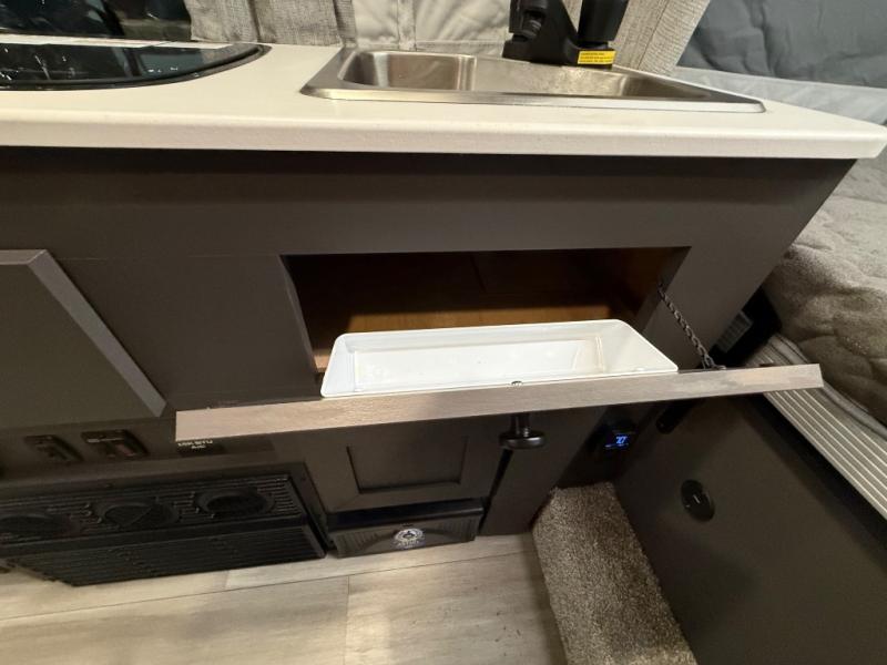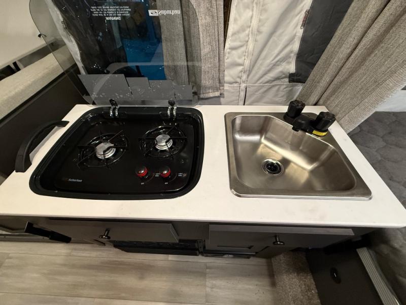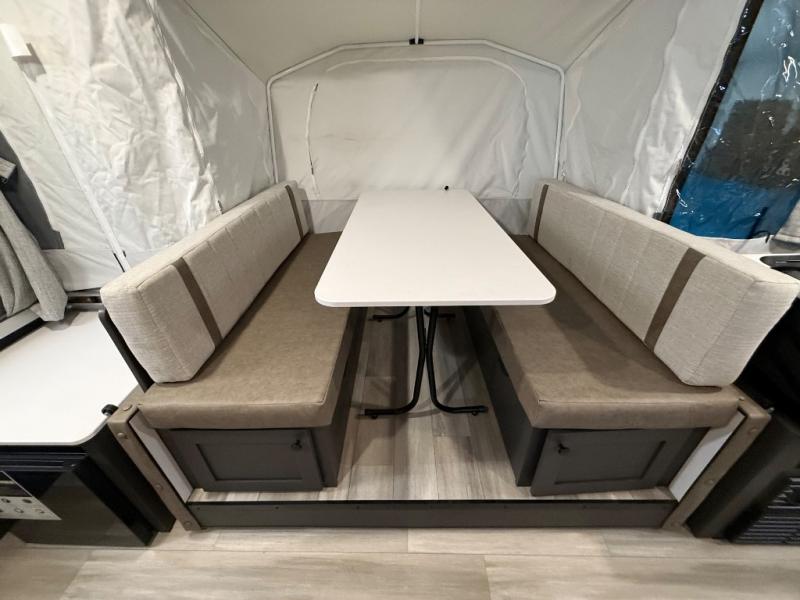 You won't have to worry about length restrictions or cumbersome towing because this Rockwood Freedom Series folding pop-up camper provides you with a lightweight and flexible alternative to heavy RVs! This camper has a single slide built into it which will deliver extra space to the interior without adding to the overall width while traveling, and the booth dinette is a functional piece of furniture that can serve as a dining table and a bed. The swing galley includes a two burner range with a cover to cook meals and a sink for easy cleaning. There is also a shower/toilet to make this unit even more convenient.
