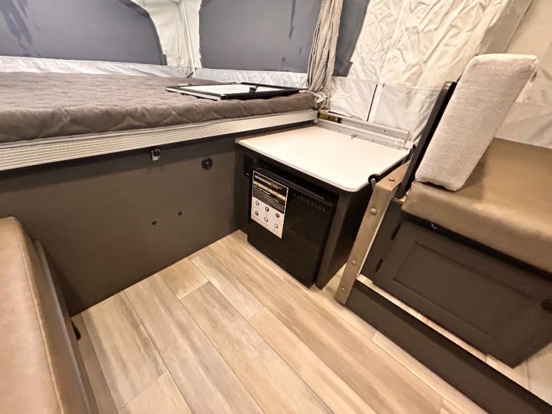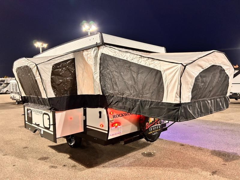 With any Rockwood Freedom Series by Forest River, you will enjoy added features to make each excursion one to remember. These folding pop-up campers feature a fiberglass laminated roof, wood plank flooring, and a two tone fiberglass exterior. The Dexter sprung axles, electric brakes, and radial tires with nitrogen will make towing easier than ever, plus there are four stabilizer jacks with sand pads to help keep your unit secure. Each model also includes an awning with LED lighting outdoors, along with a one-piece screen door, two 20 lb. LP bottles, and a power roof lift to have you set up in no-time. Inside, the 15K under-bunk A/C and 20K BTU furnace will help keep you comfortable, and the Maxxair fan will keep the air moving!