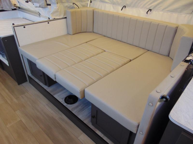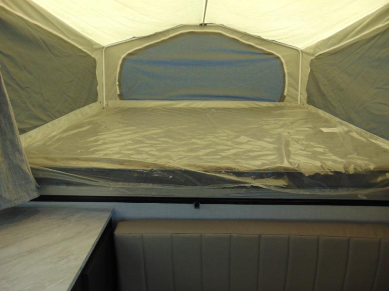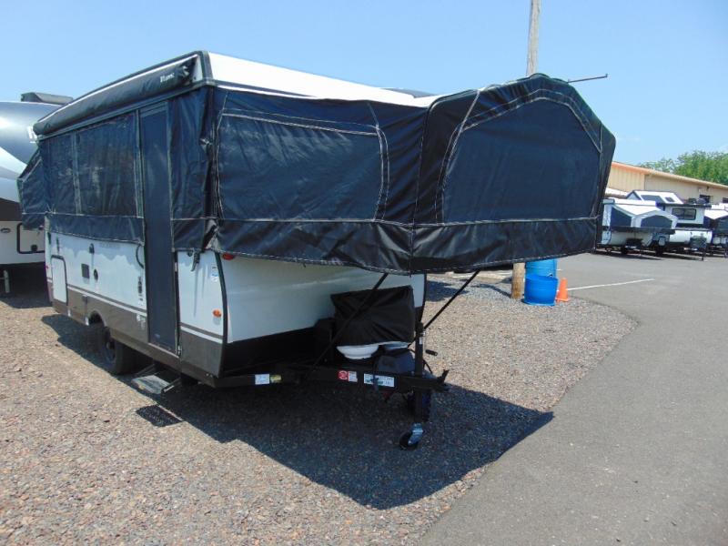 You won't have to worry about length restrictions or cumbersome towing because this Rockwood Freedom Series folding pop-up camper provides you with a lightweight and flexible alternative to heavy RVs! There is a U-shaped dinette slide that will provide seating and sleeping space, and the swing galley includes a two burner range with a cover to cook meals. There is also a shower/toilet to make this unit even more convenient. Two tent end beds will provide comfortable sleeping space, and there is a bench seat with flip-up storage for extra blankets or board games. And the exterior storage will be perfect for fishing boxes, swim gear, and more!