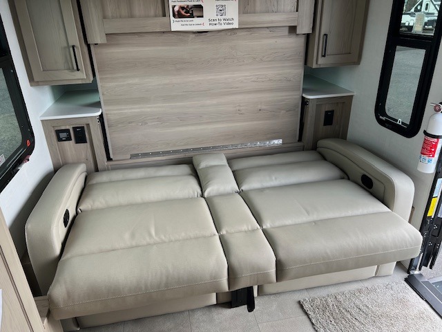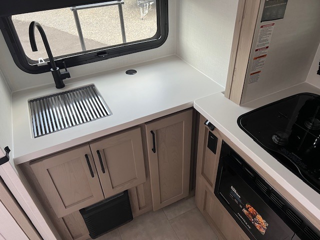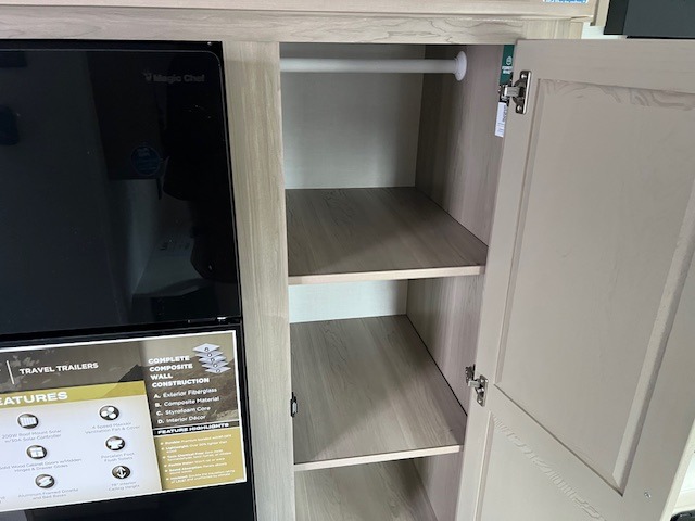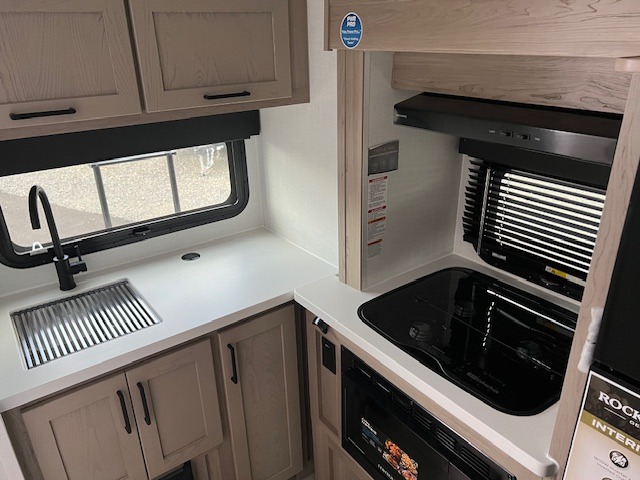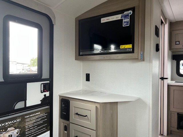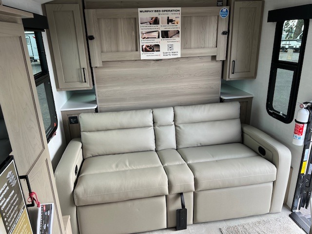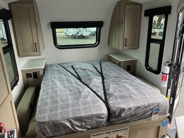 Pack your bags and head to your local state park in this travel trailer! You will love the extra space you have thanks to the kitchen slide out, and the jack knife sofa can fold away at night so you can sleep on the Murphy bed! This model includes a 32" 12V TV to keep you entertained on those rainy days, and the full bath will let you get cleaned up if you decide to hike despite the weather. There will be plenty of storage space for your belongings and gear since there is a pass-through storage and additional exterior storage!