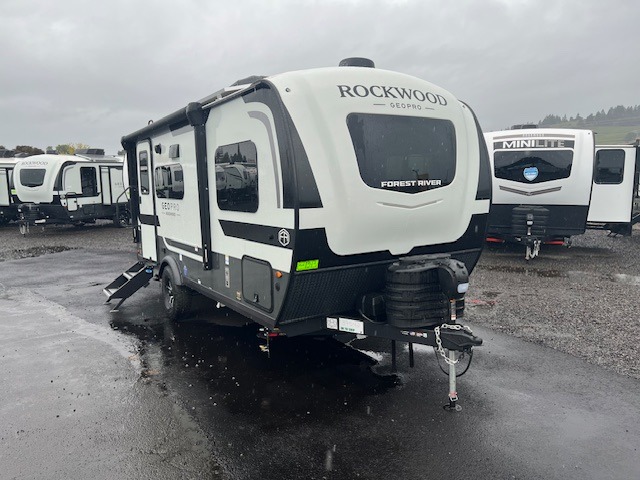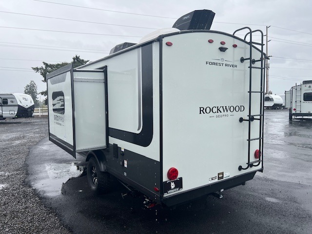 With any Rockwood GEO Pro travel trailer by Forest River you will enjoy easy towing, durable construction, and off-road capabilities with larger laminated roof! Each model is constructed with complete composite wall construction for added strength and durability, and Dexter® axles that will make towing easier than ever. Inside, you'll find sleek back up camera prep for added security, a refrigerator and a microwave, plus many other interior amenities that will make you feel at home on the road.