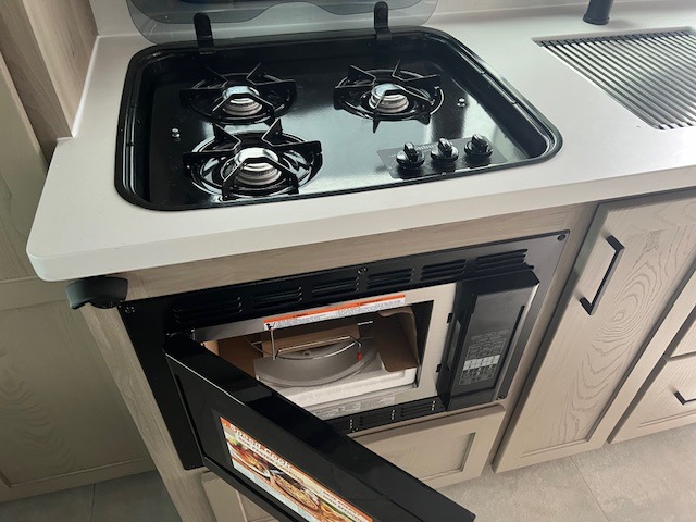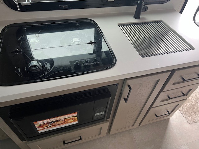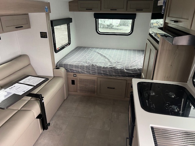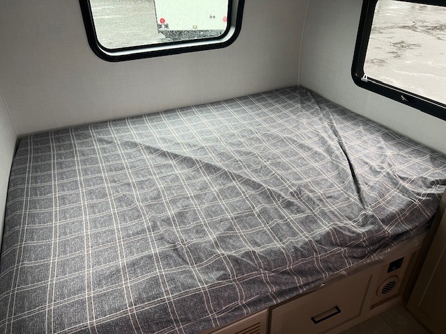 This is the perfect couple's trailer, so sneak away for a weekend in the woods. There is a 72" sofa with cupholders with a table that will be perfect for meals times and relaxing. This model includes a 12V TV to keep you busy on those rainy days, and the queen bed will provide a great night's rest. This model also include an 11' power awning so you can enjoy those nice days outdoors!