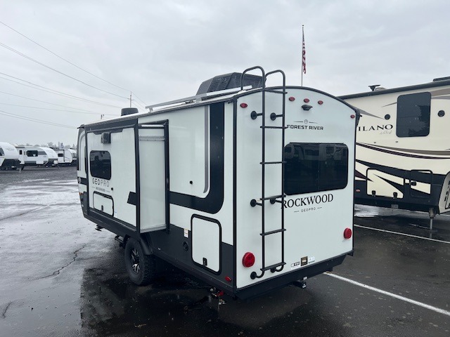 With any Rockwood GEO Pro travel trailer by Forest River you will enjoy easy towing, durable construction, and off-road capabilities with larger laminated roof! Each model is constructed with complete composite wall construction for added strength and durability, and Dexter® axles that will make towing easier than ever. Inside, you'll find sleek back up camera prep for added security, a refrigerator and a microwave, plus many other interior amenities that will make you feel at home on the road.