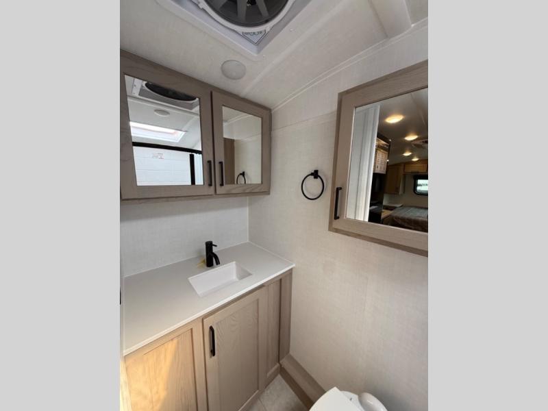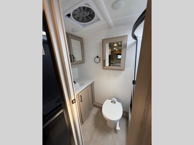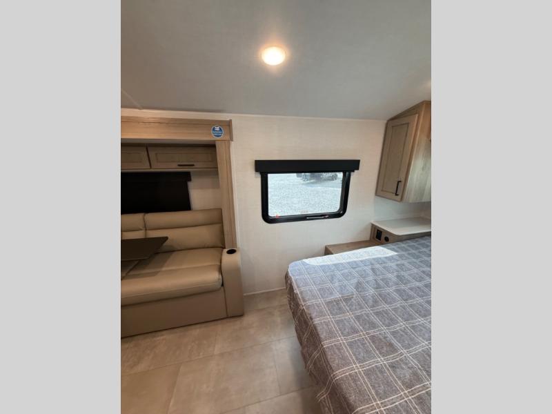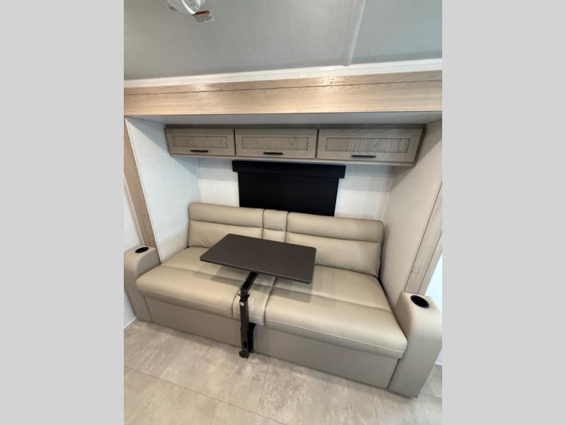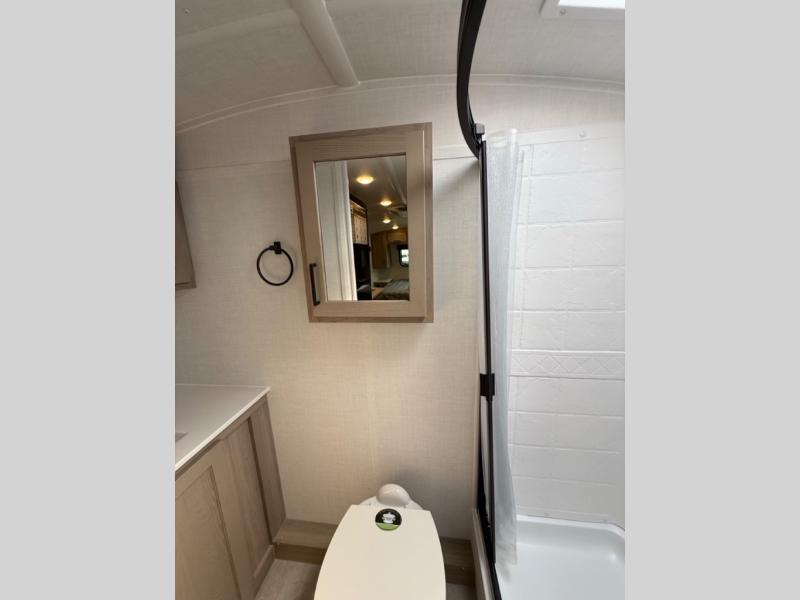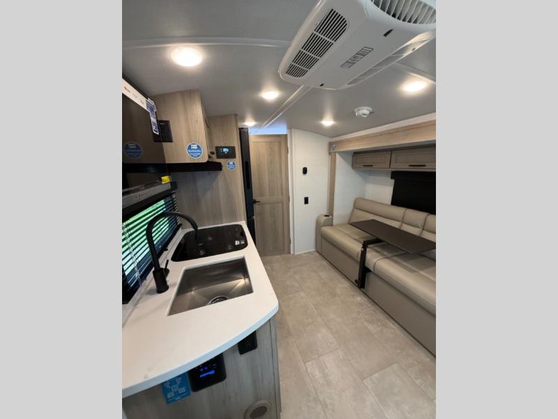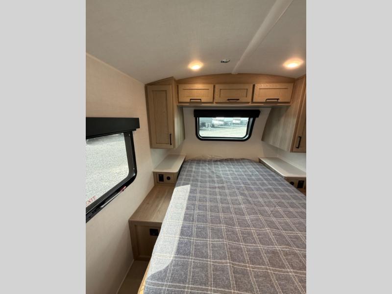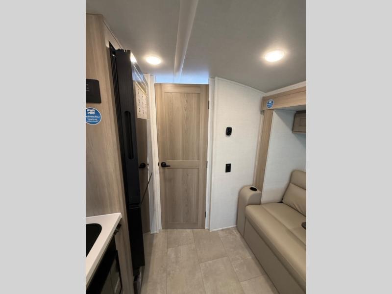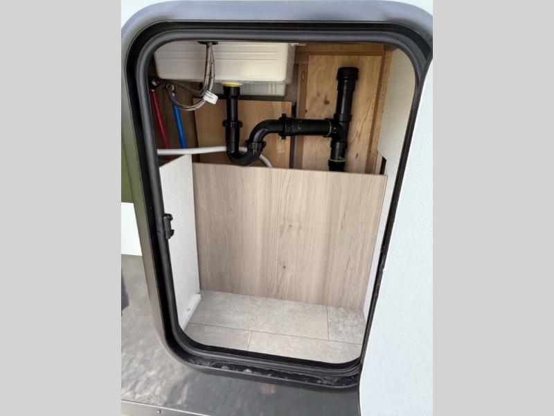 This travel trailer will feel more like home with its front bedroom and walk-around full-size bed. You'll enjoy the 32" 12V TV as you relax on the 72" sofa with a table and cupholders. The full rear bath includes a spacious shower to clean up in each day and there is a linen closet for clean towels. When you're ready to prepare dinner you'll have a three burner cooktop and microwave oven indoors, and a griddle outdoors! And don't forget the exterior storage allows you to bring along beach toys and tackle boxes. The optional Power Package available on this model includes three 200W solar panels, a side solar plug-in, a 3kW 160A inverter, and more off-grid features!