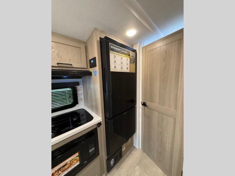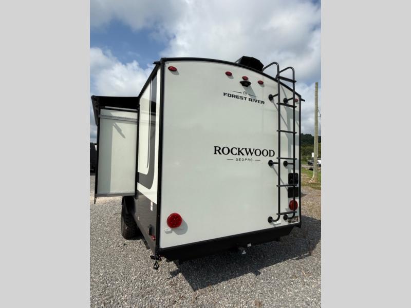 With any Rockwood GEO Pro travel trailer by Forest River you will enjoy easy towing, durable construction, and off-road capabilities with larger 15" tires and a lift kit! Each model is constructed with complete composite wall construction for added strength and durability, and the torsion axle, Rubber-Ryde suspension will make towing easier than ever. Inside, you'll find sleek roller shades for added privacy, a 12V refrigerator and a microwave, plus a 20,000 BTU furnace to keep you warm during the colder camping months.