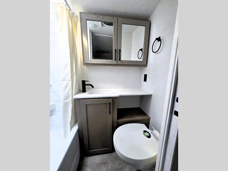 With any Rockwood GEO Pro travel trailer by Forest River you will enjoy easy towing, durable construction, and off-road capabilities with larger 15" tires and a lift kit! Each model is constructed with complete composite wall construction for added strength and durability, and the torsion axle, Rubber-Ryde suspension will make towing easier than ever. Inside, you'll find sleek roller shades for added privacy, a 12V refrigerator and a microwave, plus a 20,000 BTU furnace to keep you warm during the colder camping months.