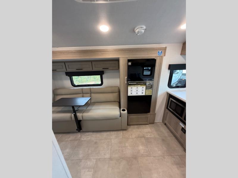 With any Rockwood GEO Pro travel trailer by Forest River you will enjoy easy towing, durable construction, and off-road capabilities with larger 15" tires and a lift kit! Each model is constructed with complete composite wall construction for added strength and durability, and the torsion axle, Rubber-Ryde suspension will make towing easier than ever. Inside, you'll find sleek roller shades for added privacy, a 12V refrigerator and a microwave, plus a 20,000 BTU furnace to keep you warm during the colder camping months.