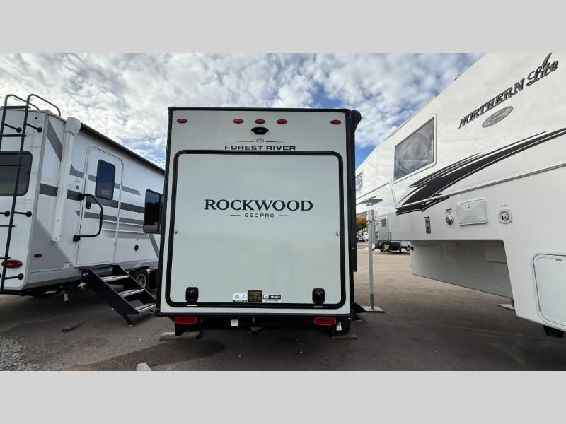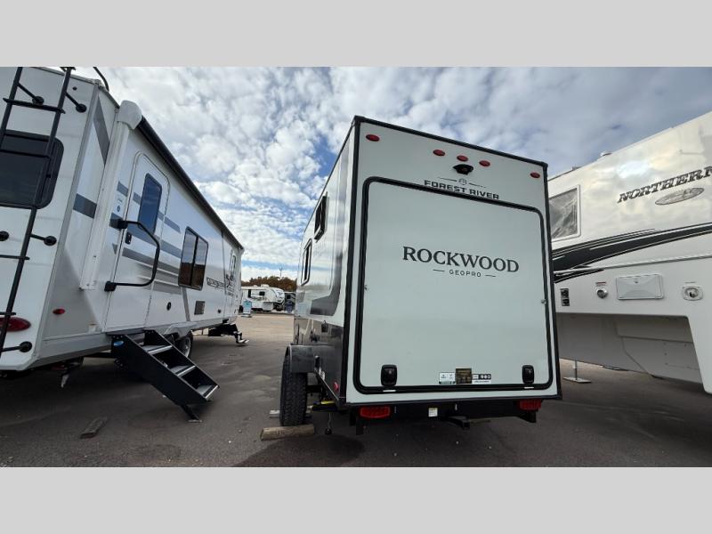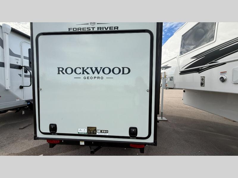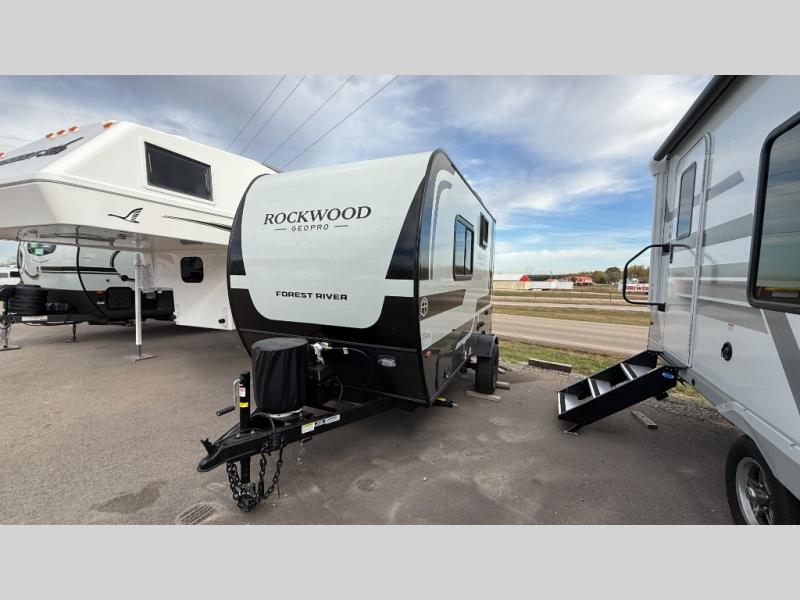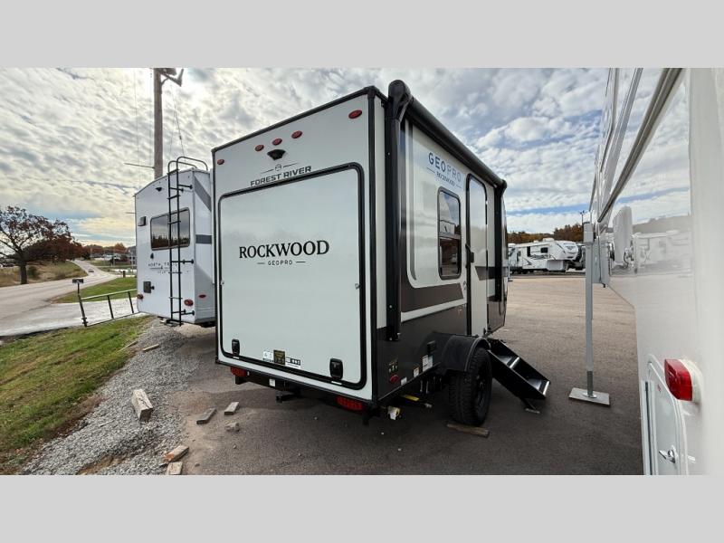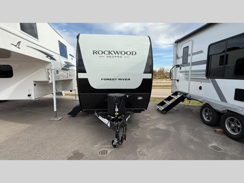 With any Rockwood GEO Pro travel trailer by Forest River you will enjoy easy towing, durable construction, and off-road capabilities with larger laminated roof! Each model is constructed with complete composite wall construction for added strength and durability, and Dexter® axles that will make towing easier than ever. Inside, you'll find sleek back up camera prep for added security, a refrigerator, plus many other interior amenities that will make you feel at home on the road.