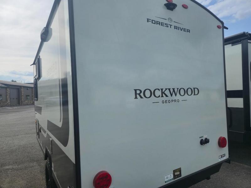 With any Rockwood GEO Pro travel trailer by Forest River you will enjoy easy towing, durable construction, and off-road capabilities with larger laminated roof! Each model is constructed with complete composite wall construction for added strength and durability, and Dexter® axles that will make towing easier than ever. Inside, you'll find sleek back up camera prep for added security, a refrigerator and a microwave, plus many other interior amenities that will make you feel at home on the road.