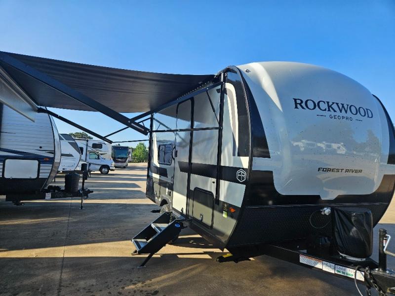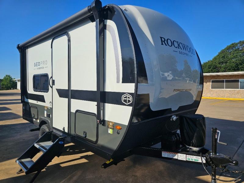 With any Rockwood GEO Pro travel trailer by Forest River you will enjoy easy towing, durable construction, and off-road capabilities with larger laminated roof! Each model is constructed with complete composite wall construction for added strength and durability, and Dexter® axles that will make towing easier than ever. Inside, you'll find sleek back up camera prep for added security, a refrigerator and a microwave, plus many other interior amenities that will make you feel at home on the road.