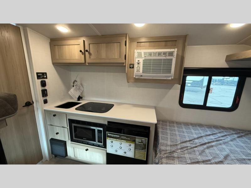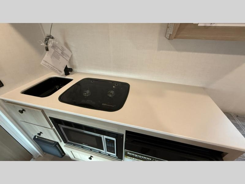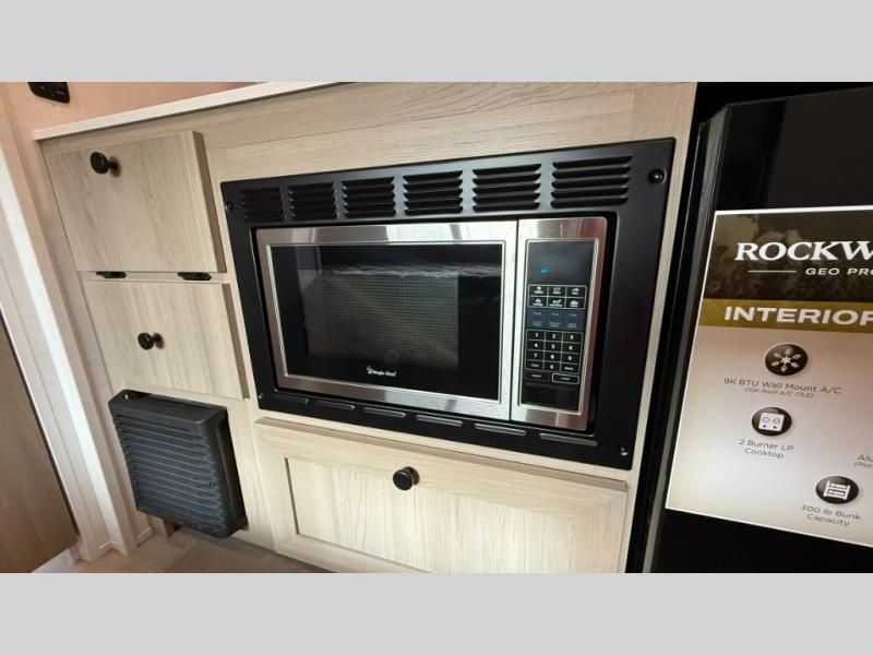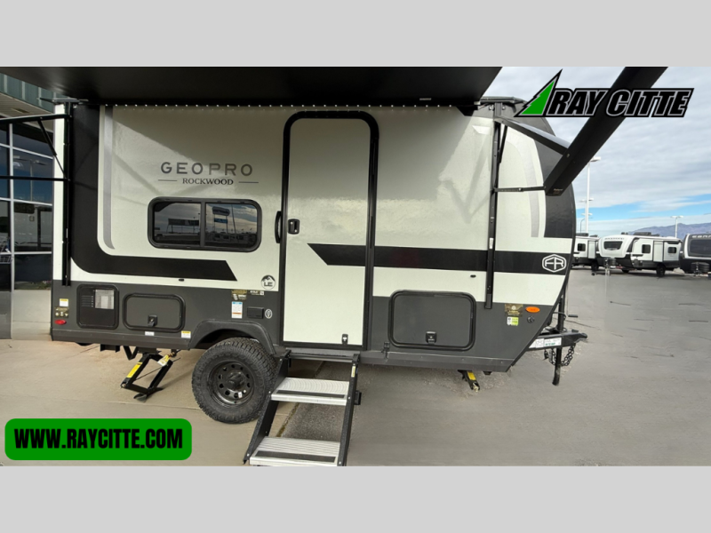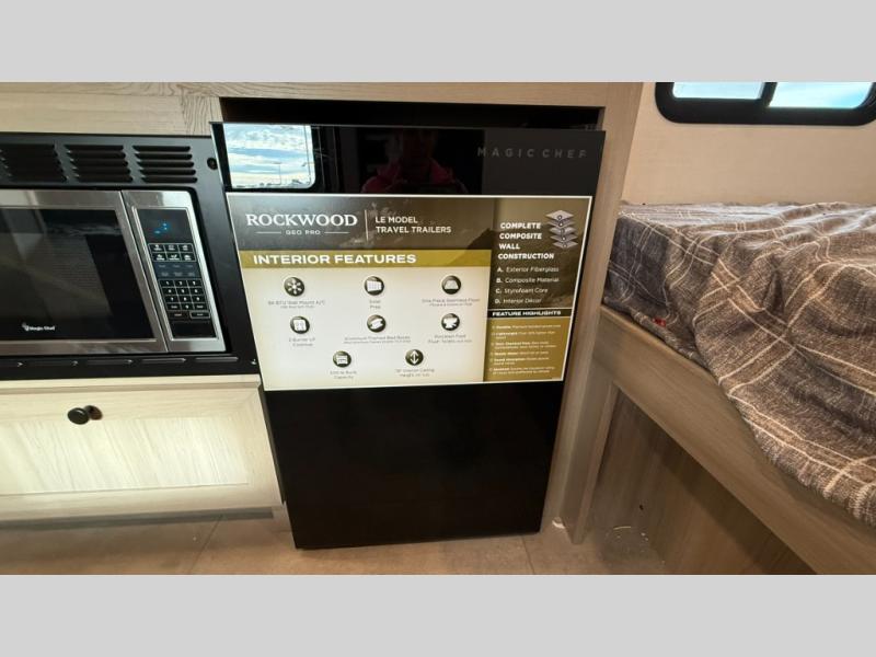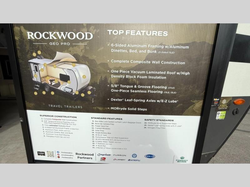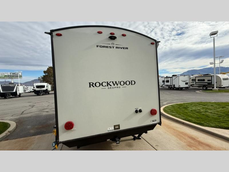 With any Rockwood GEO Pro travel trailer by Forest River you will enjoy easy towing, durable construction, and off-road capabilities with larger laminated roof! Each model is constructed with complete composite wall construction for added strength and durability, and Dexter® axles that will make towing easier than ever. Inside, you'll find sleek back up camera prep for added security, a refrigerator and a microwave, plus many other interior amenities that will make you feel at home on the road.