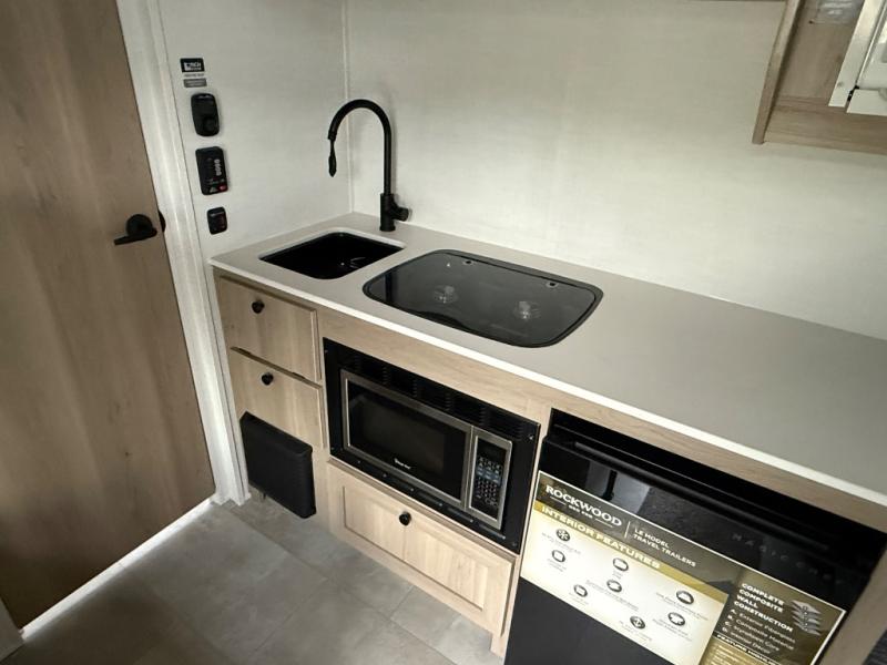 With any Rockwood GEO Pro travel trailer by Forest River you will enjoy easy towing, durable construction, and off-road capabilities with a fully laminated roof! Each model is constructed with complete composite wall construction for added strength and durability, and Dexter® axles that will make towing easier than ever. Inside, you'll find sleek back up camera prep for added security, a refrigerator and a microwave, plus many other interior amenities that will make you feel at home on the road.