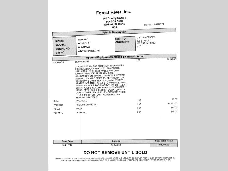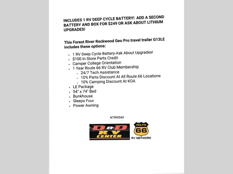 This Forest River Rockwood Geo Pro travel trailer G13LE includes these options: