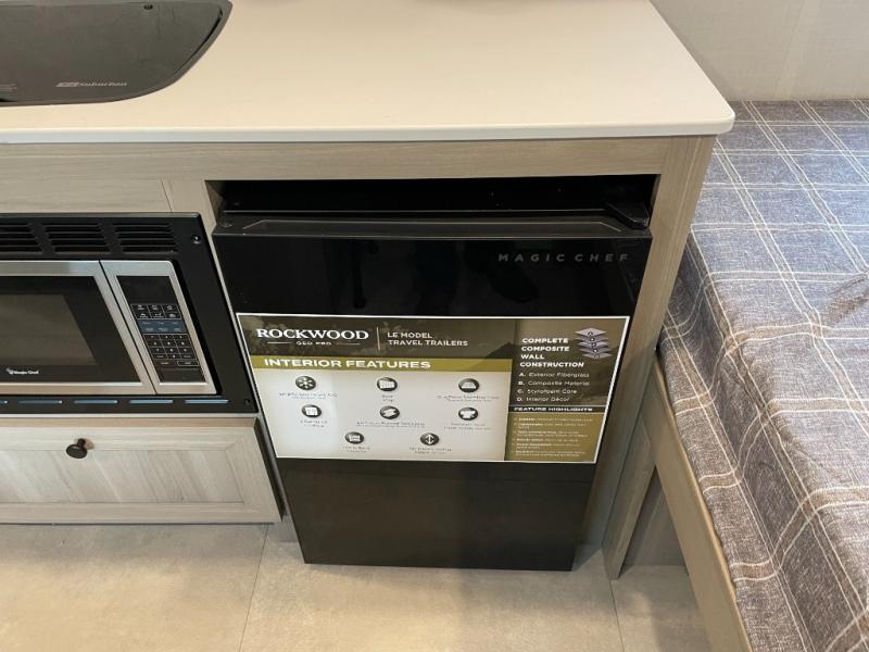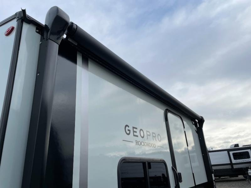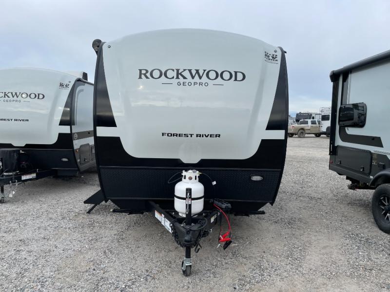 With any Rockwood GEO Pro travel trailer by Forest River you will enjoy easy towing, durable construction, and off-road capabilities with larger laminated roof! Each model is constructed with complete composite wall construction for added strength and durability, and Dexter® axles that will make towing easier than ever. Inside, you'll find sleek back up camera prep for added security, a refrigerator and a microwave, plus many other interior amenities that will make you feel at home on the road.