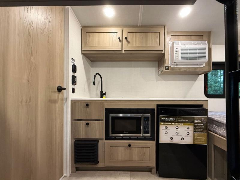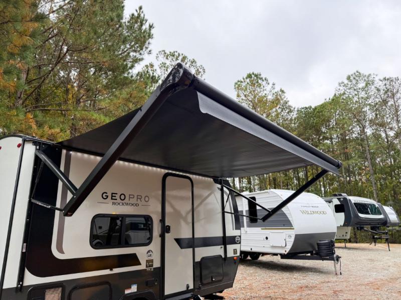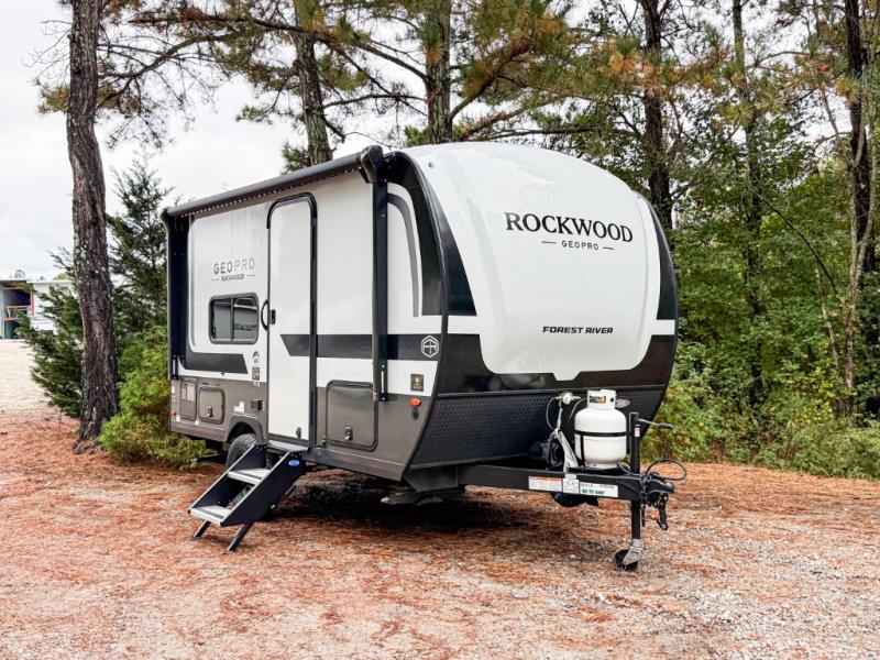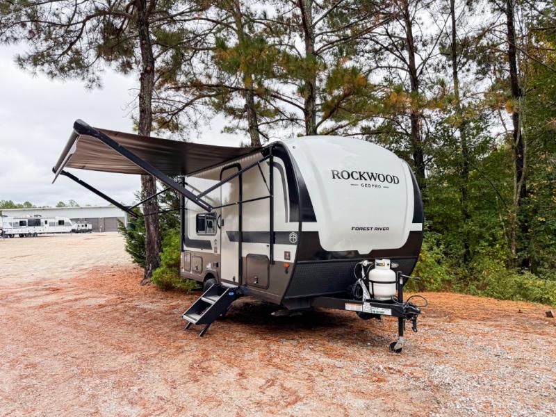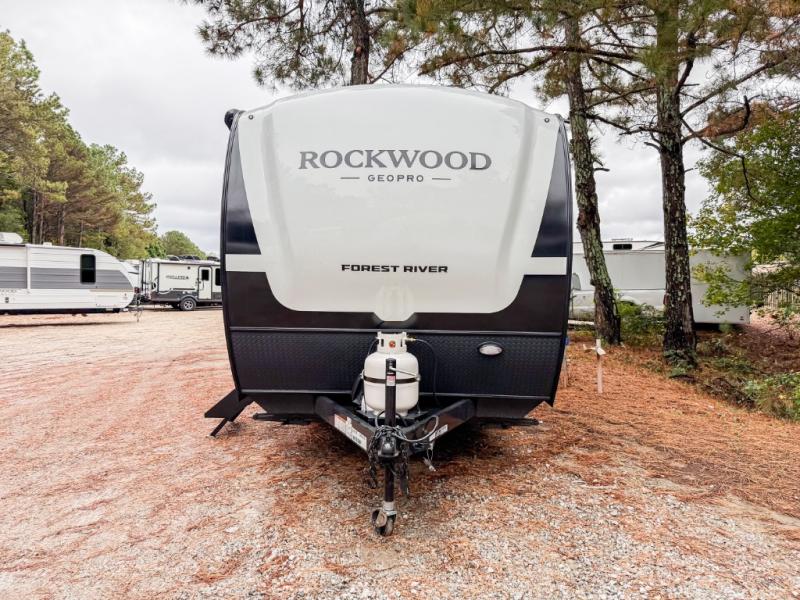 With any Rockwood GEO Pro travel trailer by Forest River you will enjoy easy towing, durable construction, and off-road capabilities with larger laminated roof! Each model is constructed with complete composite wall construction for added strength and durability, and Dexter® axles that will make towing easier than ever. Inside, you'll find sleek back up camera prep for added security, a refrigerator and a microwave, plus many other interior amenities that will make you feel at home on the road.