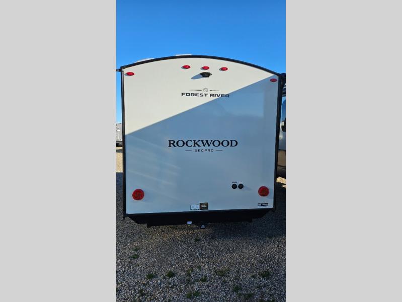 With any Rockwood GEO Pro travel trailer by Forest River you will enjoy easy towing, durable construction, and off-road capabilities with a fully laminated roof! Each model is constructed with complete composite wall construction for added strength and durability, and Dexter® axles that will make towing easier than ever. Inside, you'll find sleek back up camera prep for added security, a refrigerator and a microwave, plus many other interior amenities that will make you feel at home on the road.
