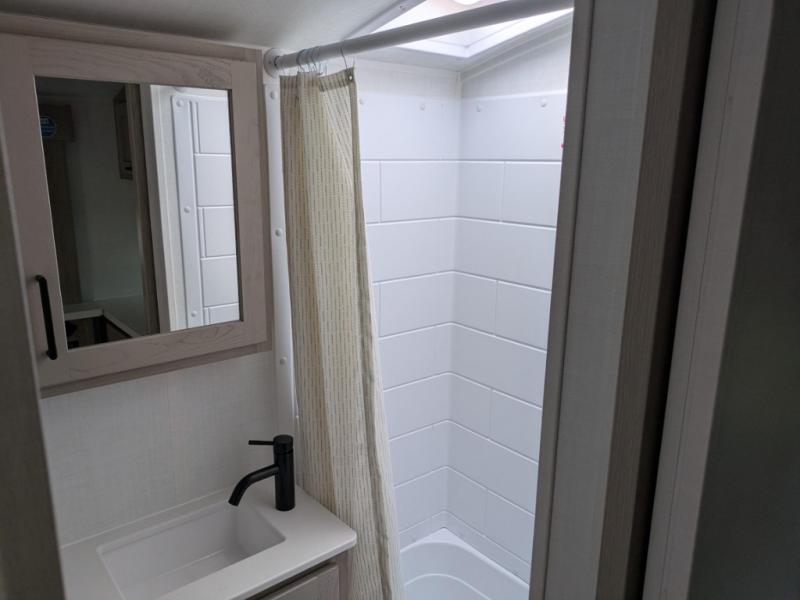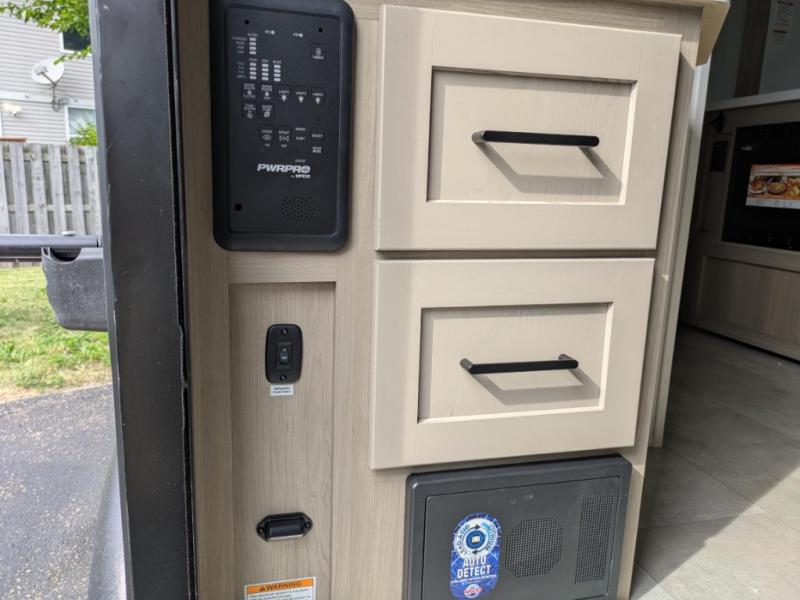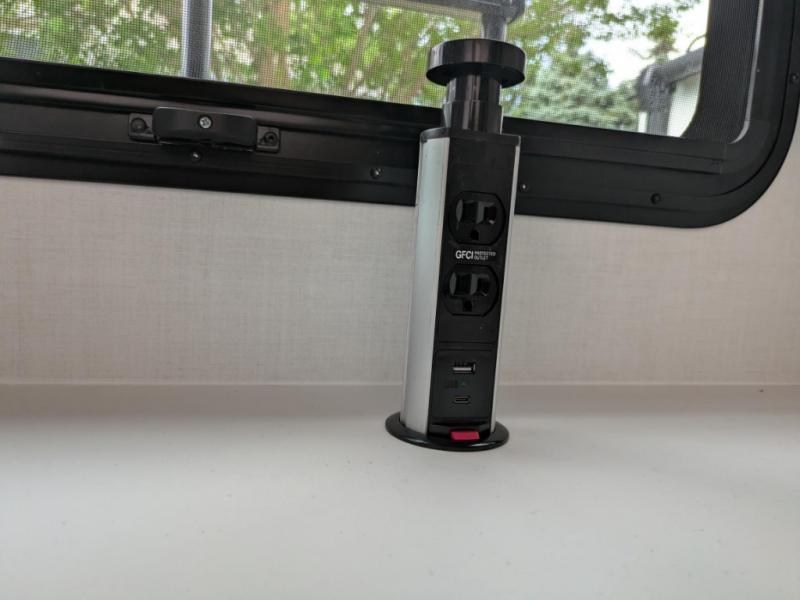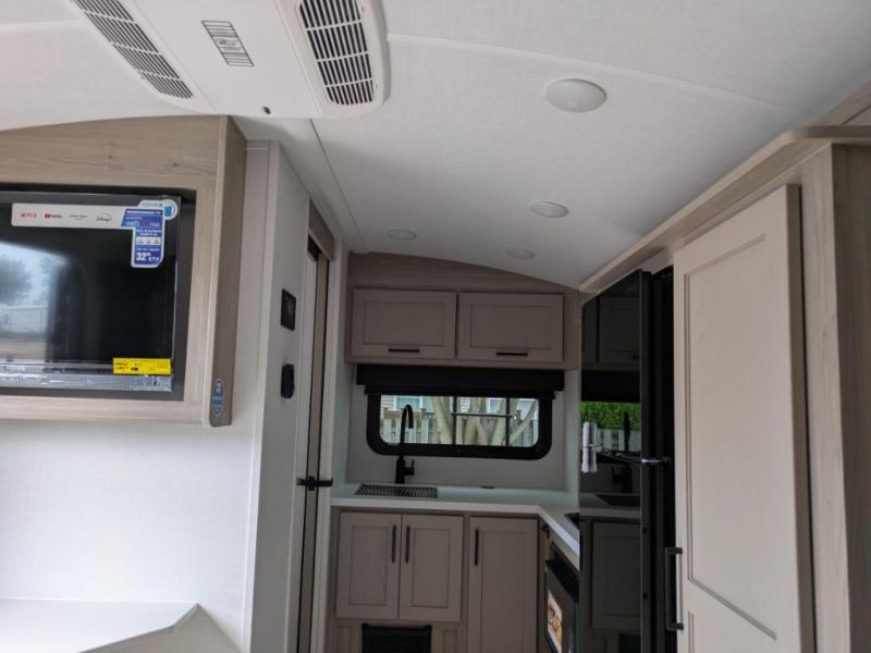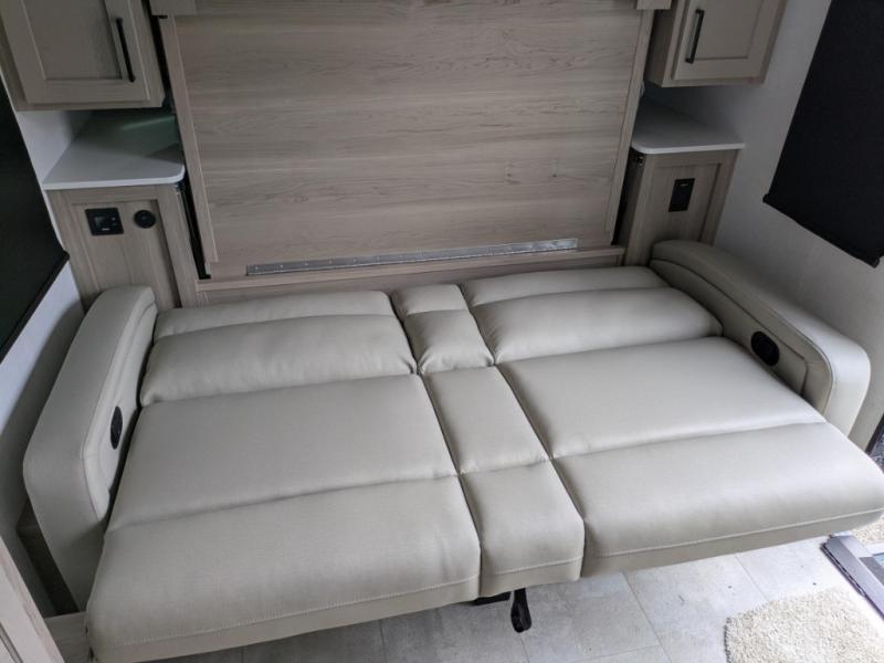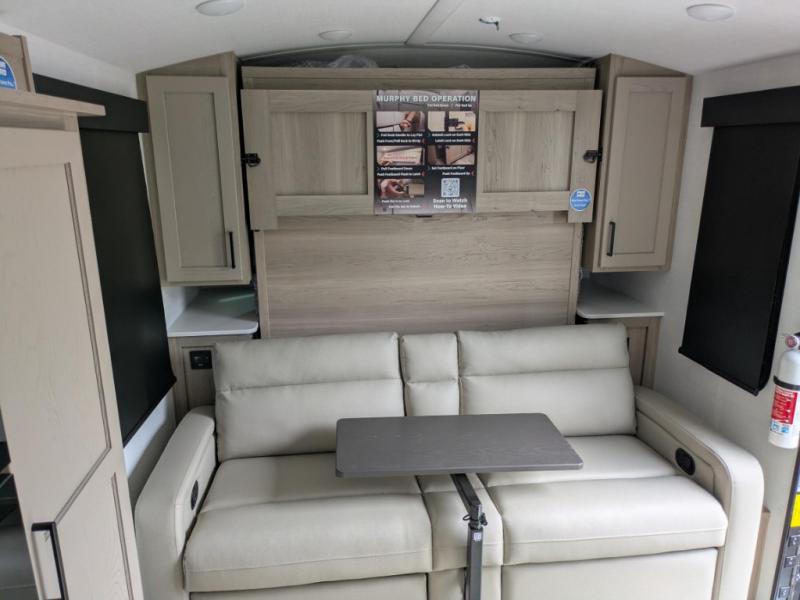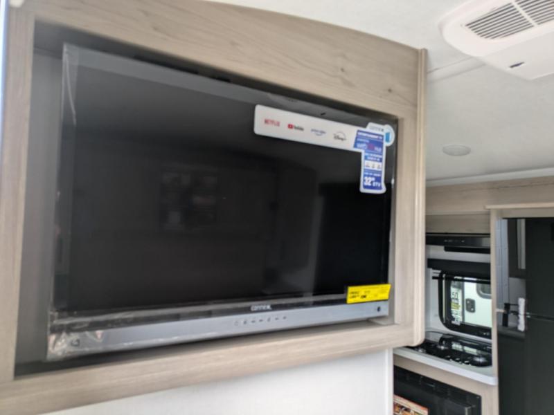 Step inside to find a clever kitchen slide out that gives you extra space to prepare your favorite meals with ease. The jackknife sofa folds away quickly, creating room to unwind or sleep comfortably on the Murphy bed by night. A 32" 12V TV keeps you entertained during rainy afternoons or quiet evenings, while the full bath ensures you stay fresh no matter how adventurous your day has been.