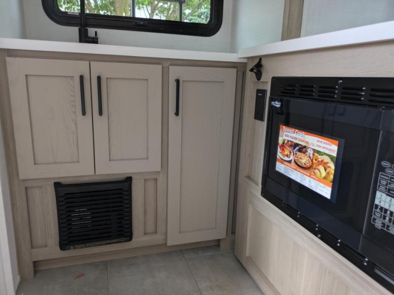 Inside, you’ll appreciate sleek roller shades for privacy, a 12V refrigerator and microwave for easy meal prep, and a powerful 20,000 BTU furnace that keeps things cozy when the temperatures drop. This trailer truly balances lightweight convenience with all the essentials you need for comfortable camping all year long.