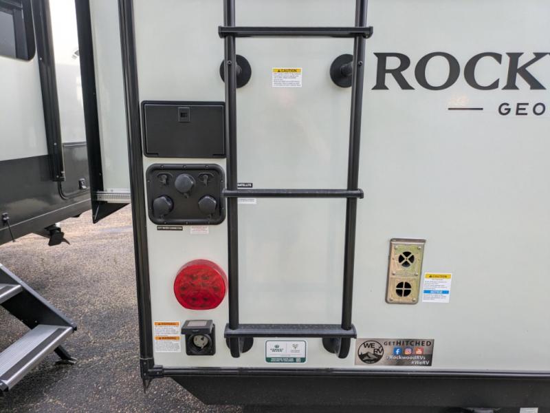 The Rockwood GEO Pro series is renowned for its rugged construction and reliable performance. With composite wall construction for strength and durability, plus a torsion axle and Rubber-Ryde suspension, this model tackles rough terrain with confidence. Larger 15" tires and a lift kit add off-road capability, so you can explore hidden gems with ease.