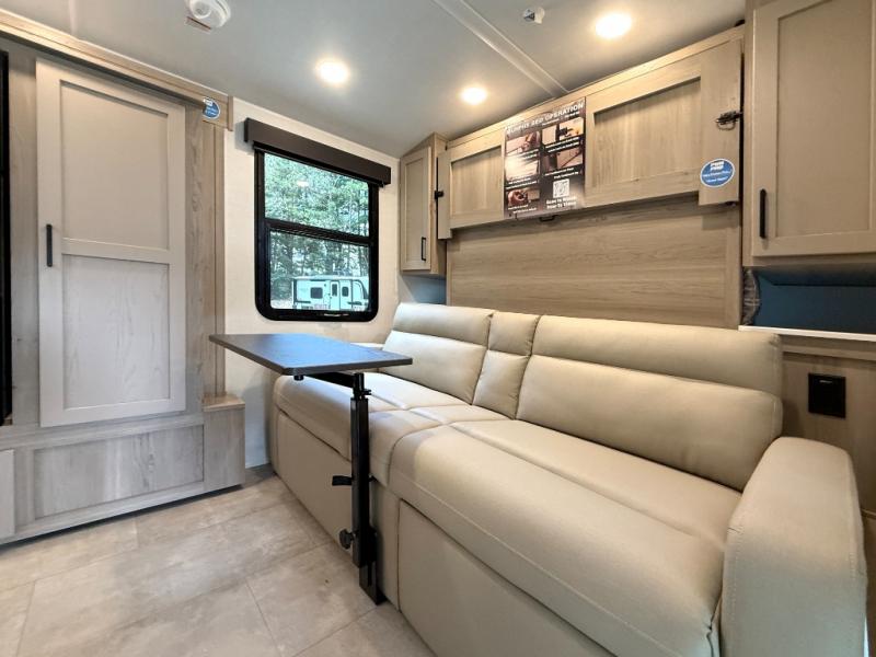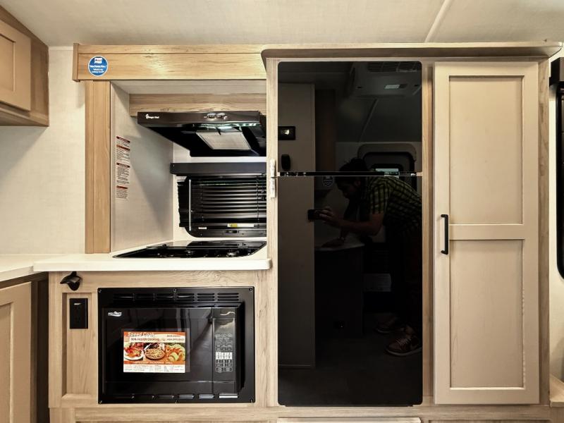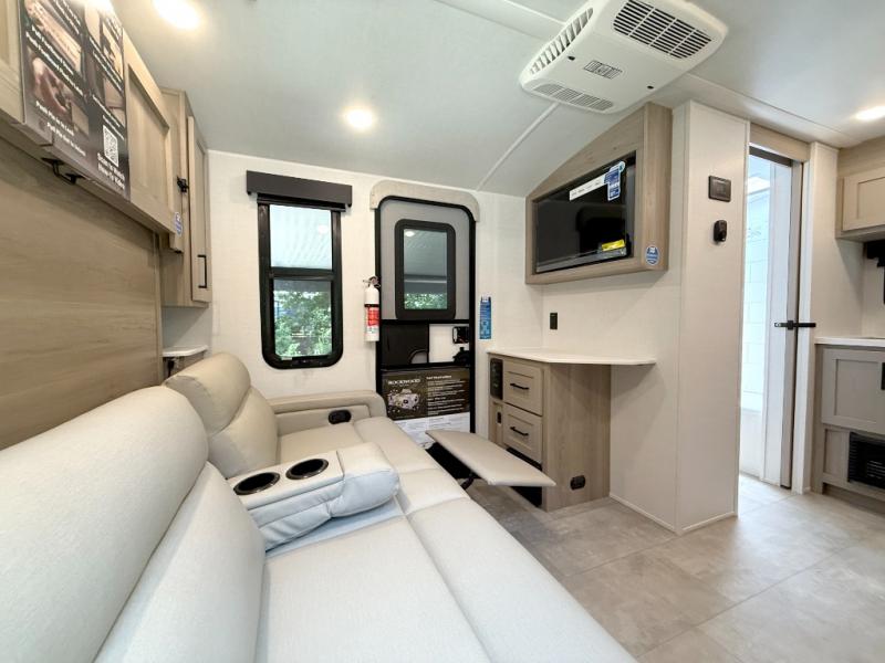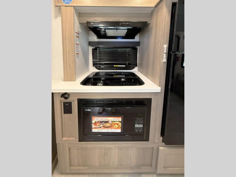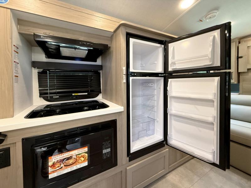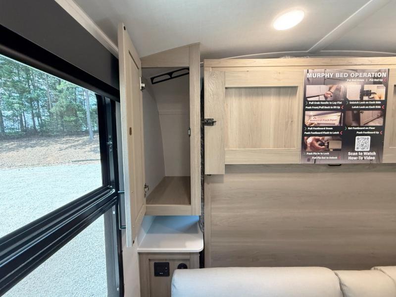 Pack your bags and head to your local state park in this travel trailer! You will love the extra space you have thanks to the kitchen slide out, and the jack knife sofa can fold away at night so you can sleep on the Murphy bed! This model includes a 32" 12V TV to keep you entertained on those rainy days, and the full bath will let you get cleaned up if you decide to hike despite the weather. There will be plenty of storage space for your belongings and gear since there is a pass-through storage and additional exterior storage, and don't overlook the exterior griddle for breakfast outdoors!