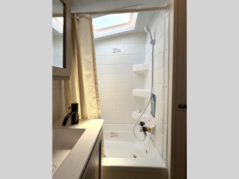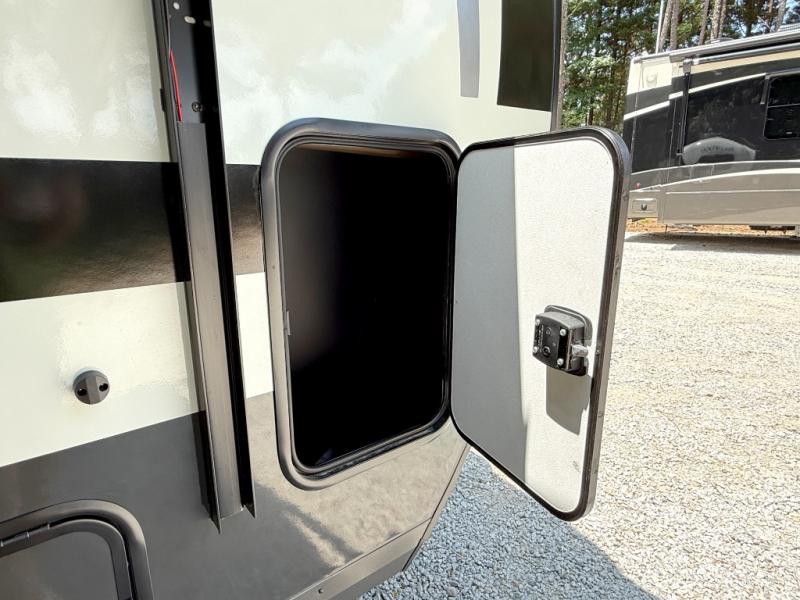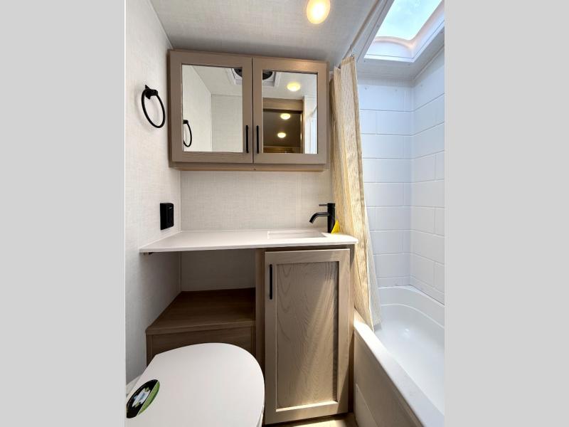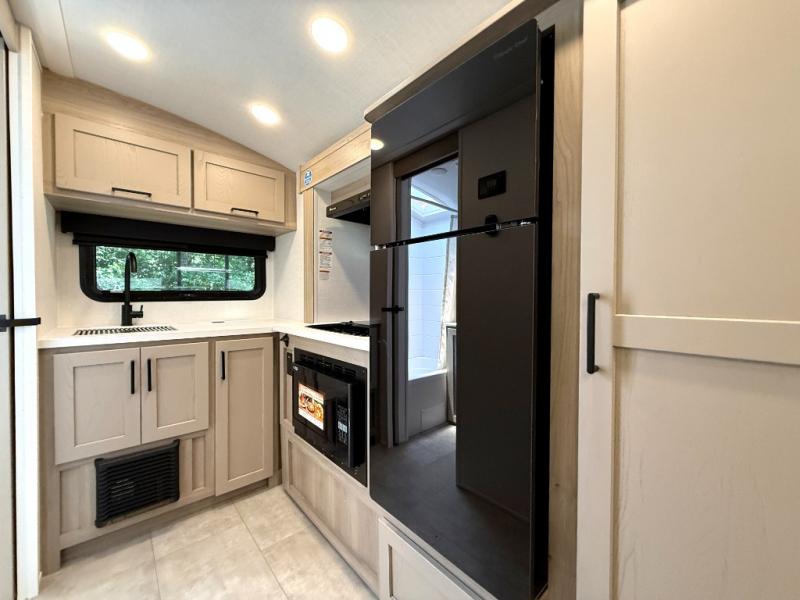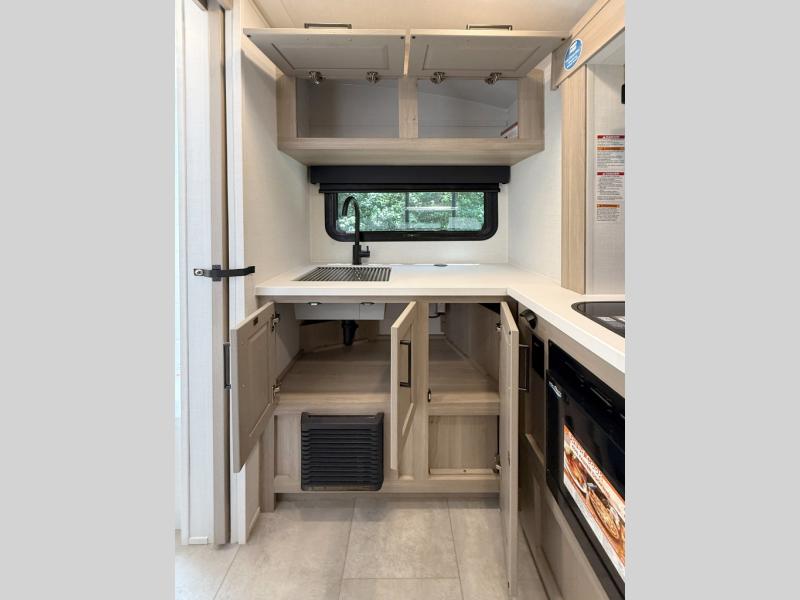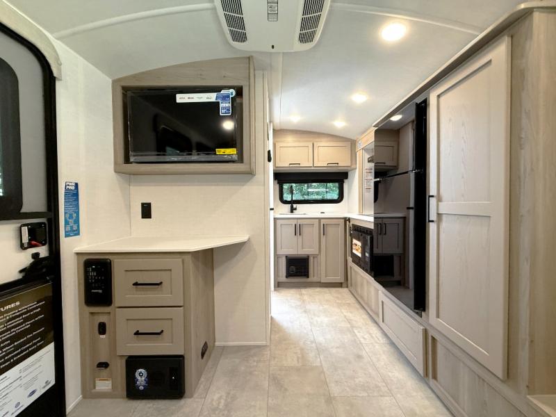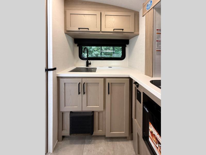 Pack your bags and head to your local state park in this travel trailer! You will love the extra space you have thanks to the kitchen slide out, and the jack knife sofa can fold away at night so you can sleep on the Murphy bed! This model includes a 32" 12V TV to keep you entertained on those rainy days, and the full bath will let you get cleaned up if you decide to hike despite the weather. There will be plenty of storage space for your belongings and gear since there is a pass-through storage and additional exterior storage, and don't overlook the exterior griddle for breakfast outdoors!