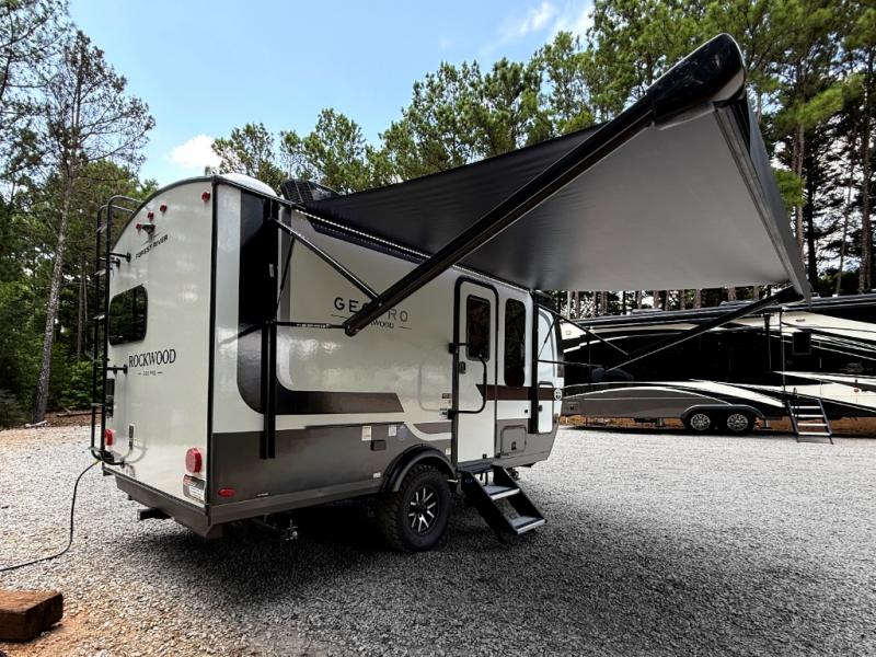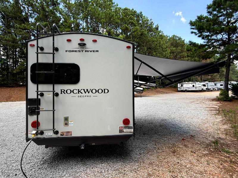 With any Rockwood GEO Pro travel trailer by Forest River you will enjoy easy towing, durable construction, and off-road capabilities with larger 15" tires and a lift kit! Each model is constructed with complete composite wall construction for added strength and durability, and the torsion axle, Rubber-Ryde suspension will make towing easier than ever. Inside, you'll find sleek roller shades for added privacy, a 12V refrigerator and a microwave, plus a 20,000 BTU furnace to keep you warm during the colder camping months.