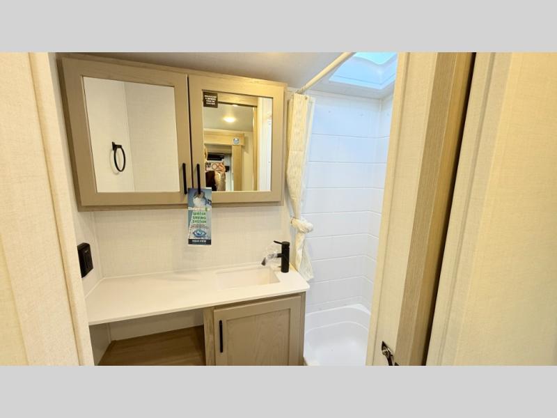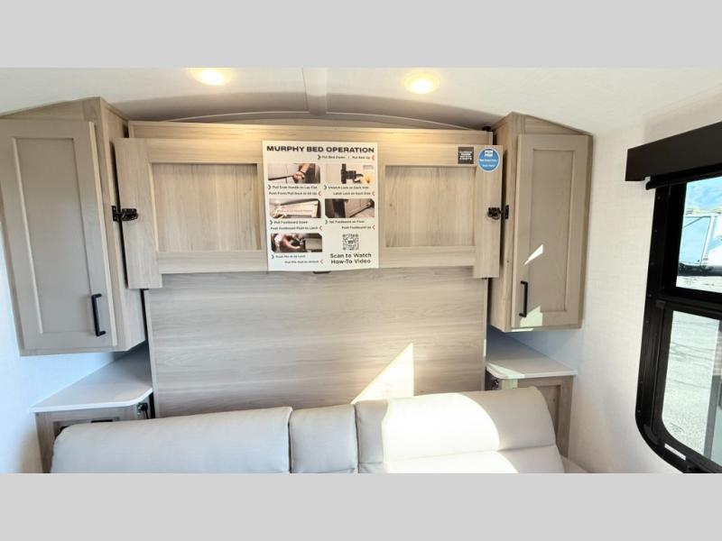 Pack your bags and head to your local state park in this travel trailer! You will love the extra space you have thanks to the kitchen slide out, and the jack knife sofa can fold away at night so you can sleep on the Murphy bed! This model includes a 32" 12V TV to keep you entertained on those rainy days, and the full bath will let you get cleaned up if you decide to hike despite the weather. There will be plenty of storage space for your belongings and gear since there is a pass-through storage and additional exterior storage, and don't overlook the exterior griddle for breakfast outdoors!