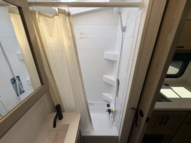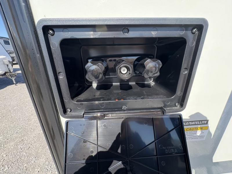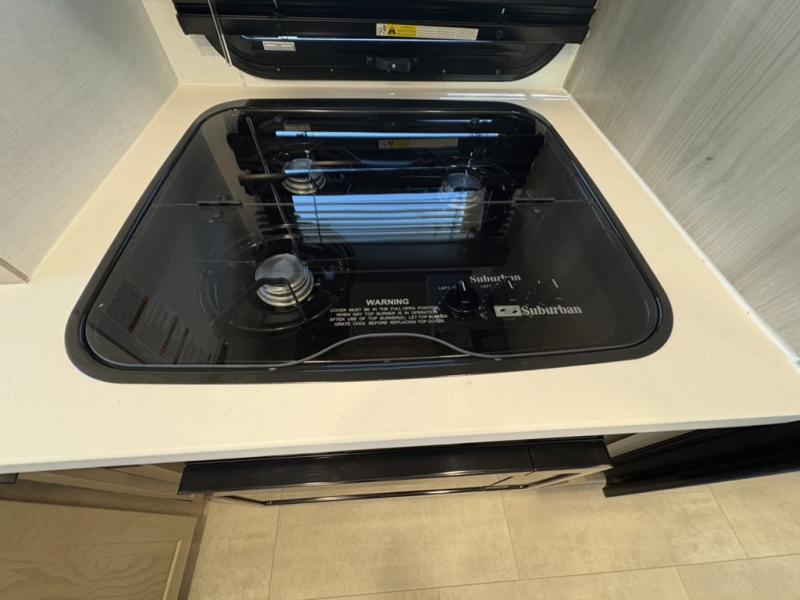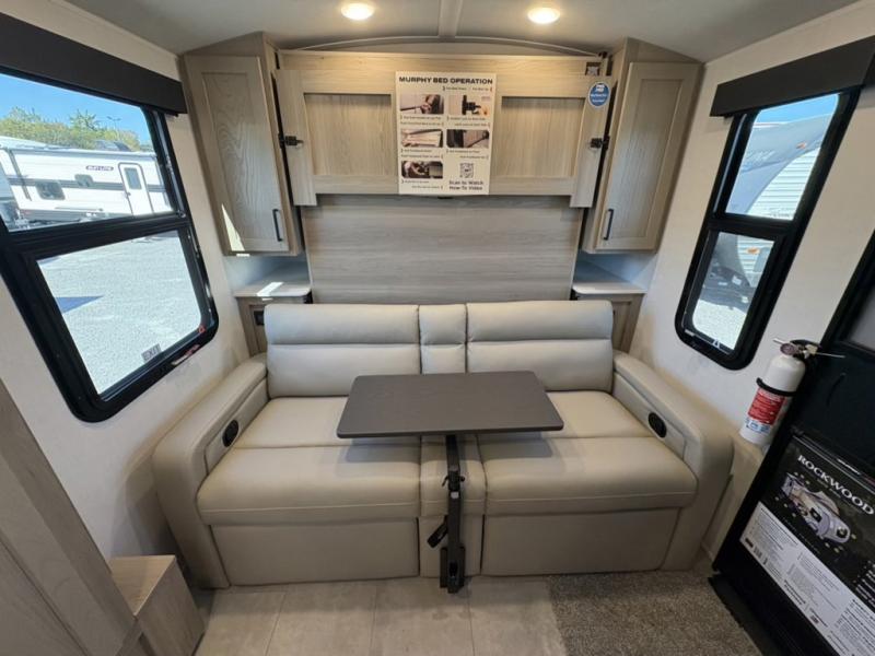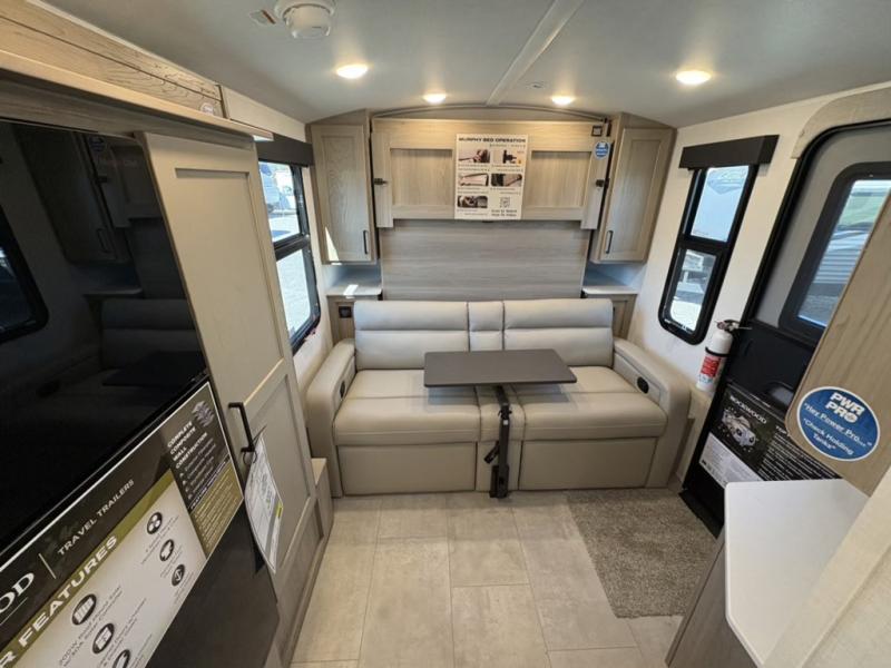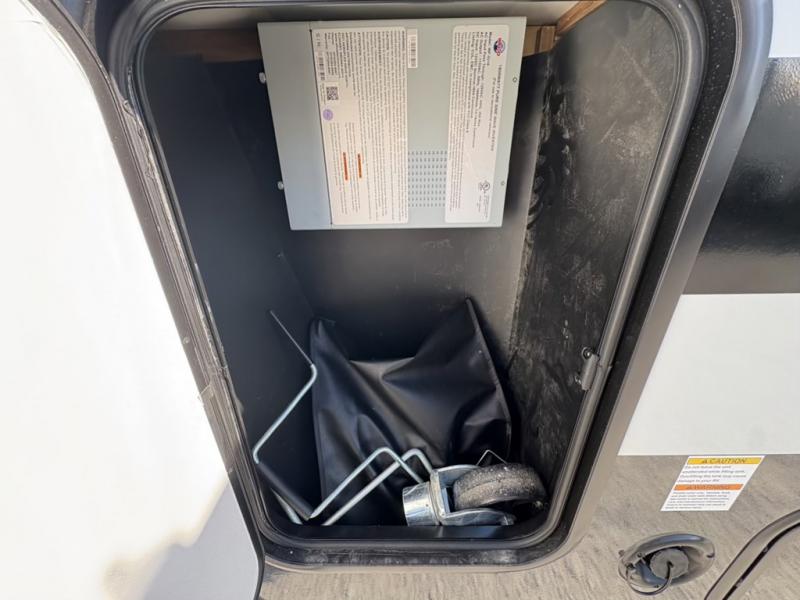 Pack your bags and head to your local state park in this travel trailer! You will love the extra space you have thanks to the kitchen slide out, and the jack knife sofa can fold away at night so you can sleep on the Murphy bed! This model includes a 32" 12V TV to keep you entertained on those rainy days, and the full bath will let you get cleaned up if you decide to hike despite the weather. There will be plenty of storage space for your belongings and gear since there is a pass-through storage and additional exterior storage, and don't overlook the exterior griddle for breakfast outdoors!