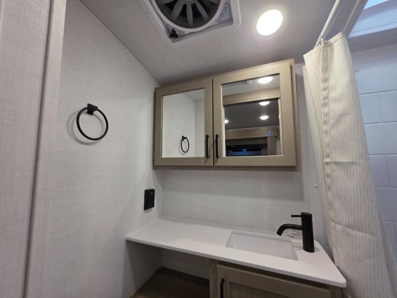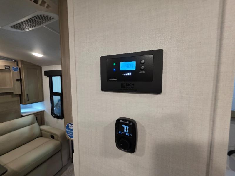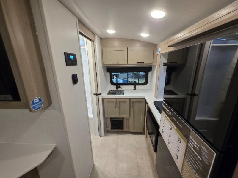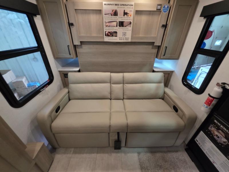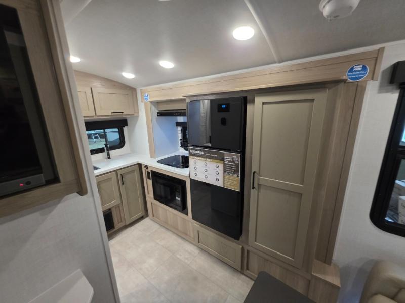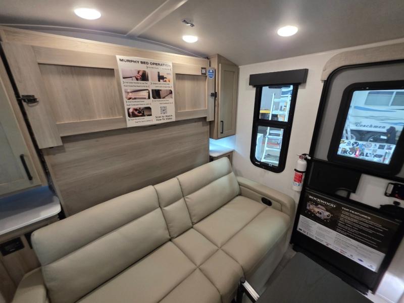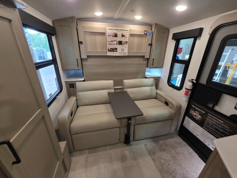 Pack your bags and head to your local state park in this travel trailer! You will love the extra space you have thanks to the kitchen slide out, and the jack knife sofa can fold away at night so you can sleep on the Murphy bed! This model includes a 32" 12V TV to keep you entertained on those rainy days, and the full bath will let you get cleaned up if you decide to hike despite the weather. There will be plenty of storage space for your belongings and gear since there is a pass-through storage and additional exterior storage, and don't overlook the exterior griddle for breakfast outdoors!