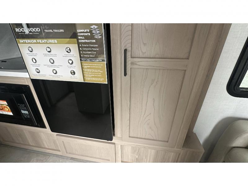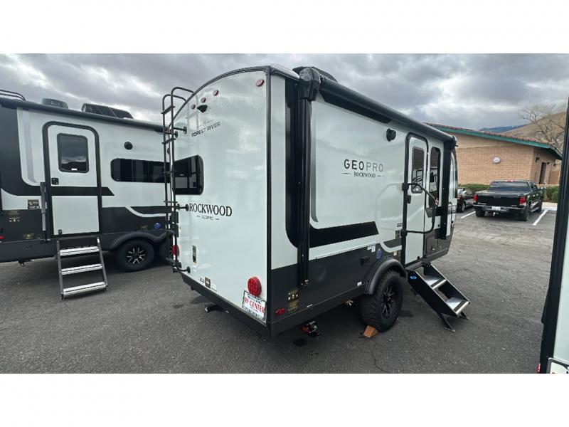 With any Rockwood GEO Pro travel trailer by Forest River you will enjoy easy towing, durable construction, and off-road capabilities with larger laminated roof! Each model is constructed with complete composite wall construction for added strength and durability, and Dexter® axles that will make towing easier than ever. Inside, you'll find sleek back up camera prep for added security, a refrigerator and a microwave, plus many other interior amenities that will make you feel at home on the road.