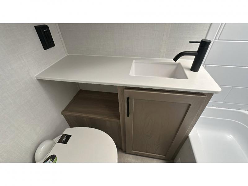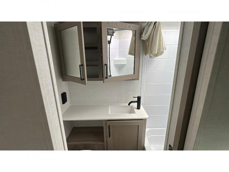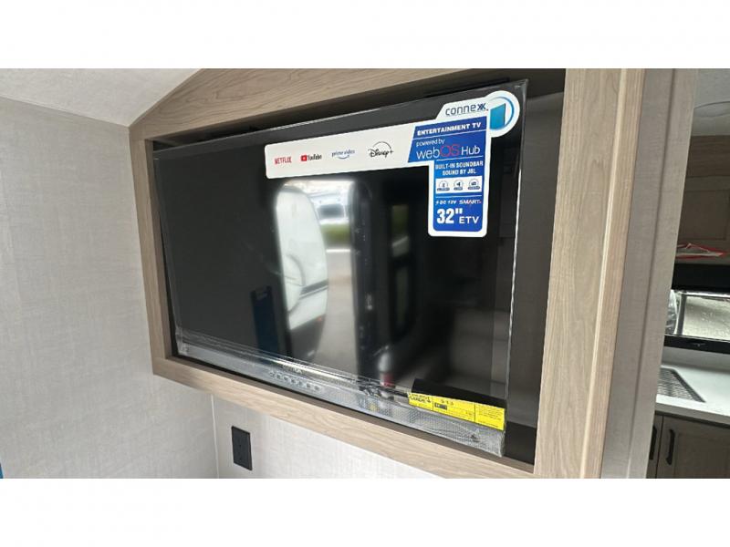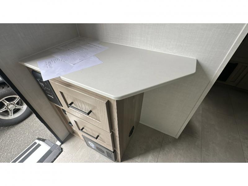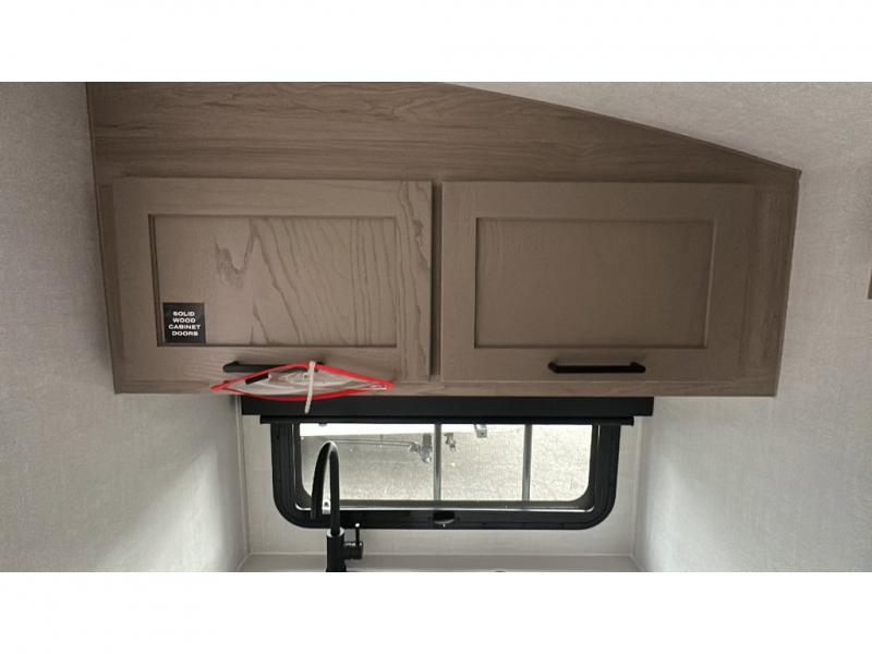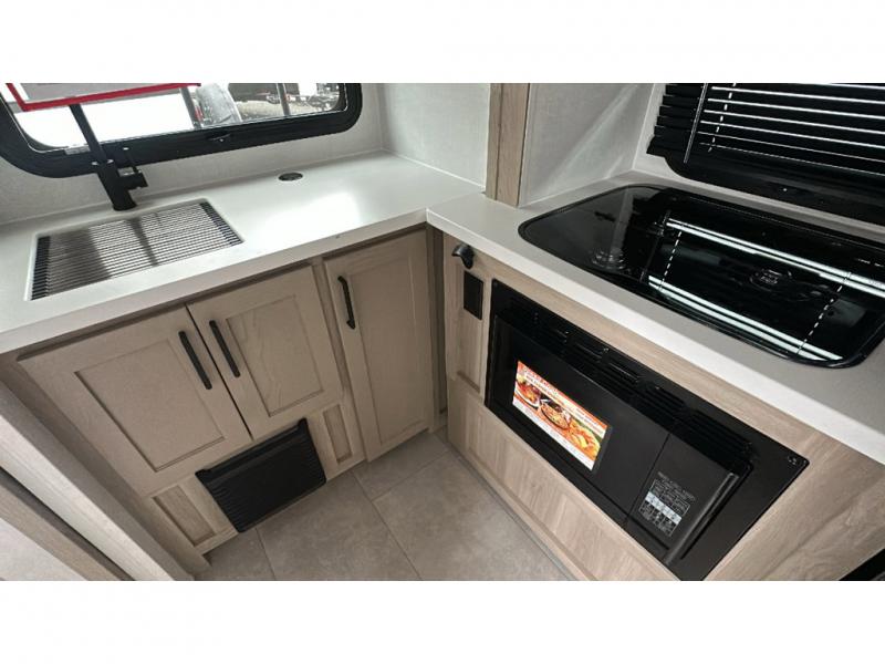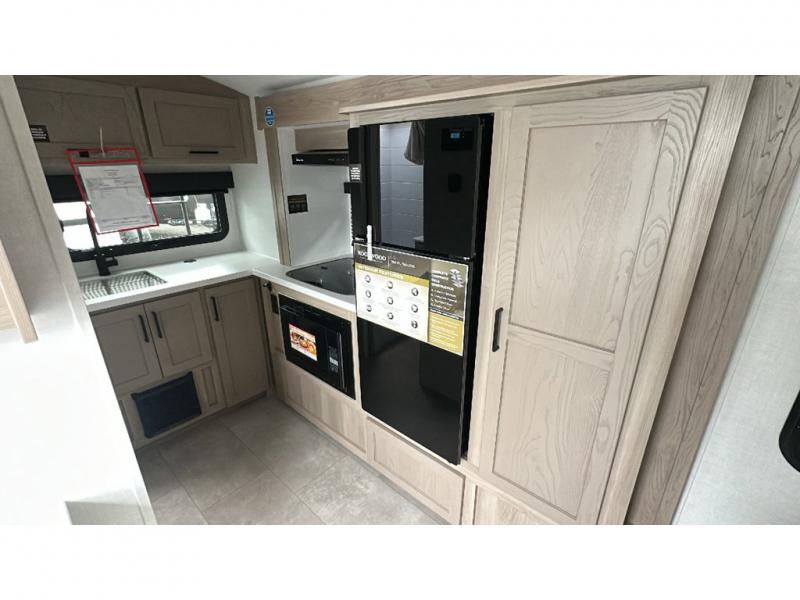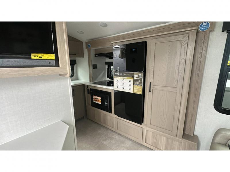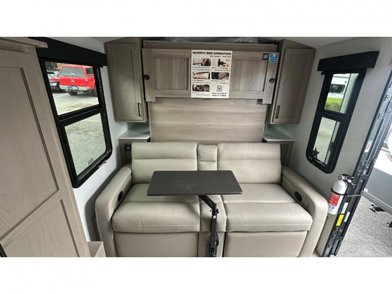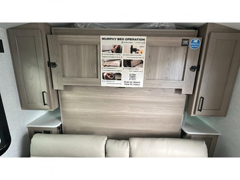 Pack your bags and head to your local state park in this travel trailer! You will love the extra space you have thanks to the kitchen slide out, and the jack knife sofa can fold away at night so you can sleep on the Murphy bed! This model includes a 12V TV to keep you entertained on those rainy days, and the full bath will let you get cleaned up if you decide to hike despite the weather. There will be plenty of storage space for your belongings and gear since there is a pass-through storage and additional exterior storage.