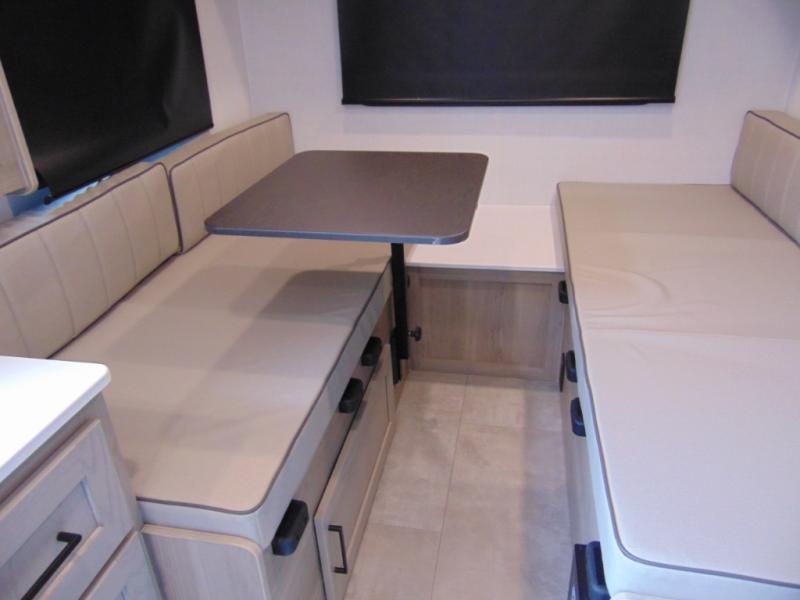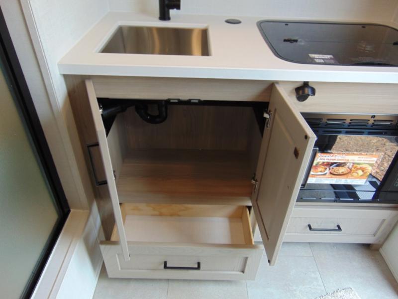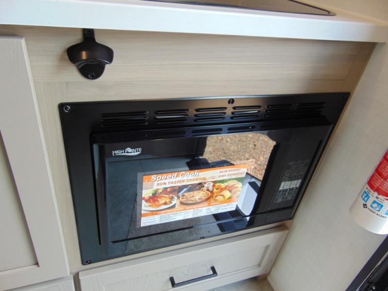 It won't be hard to find comfort in this travel trailer. It may be smaller on size, but it doesn't skim on features. The twin beds convert to a king-size bed for your comfort, and there is even a 32" 12V TV to enjoy in the evenings. The kitchen includes a three burner cooktop, a convection microwave, plus a 12V refrigerator for perishables. You'll find overhead compartments for your valuables and exterior storage for your hiking gear! With any Rockwood GEO Pro travel trailer by Forest River you will enjoy easy towing, durable construction, and off-road capabilities with larger 15" tires and a lift kit! Each model is constructed with complete composite wall construction for added strength and durability, and the torsion axle, Rubber-Ryde suspension will make towing easier than ever. Inside, you'll find sleek roller shades for added privacy, a 12V refrigerator and a microwave, plus a 20,000 BTU furnace to keep you warm during the colder camping months.