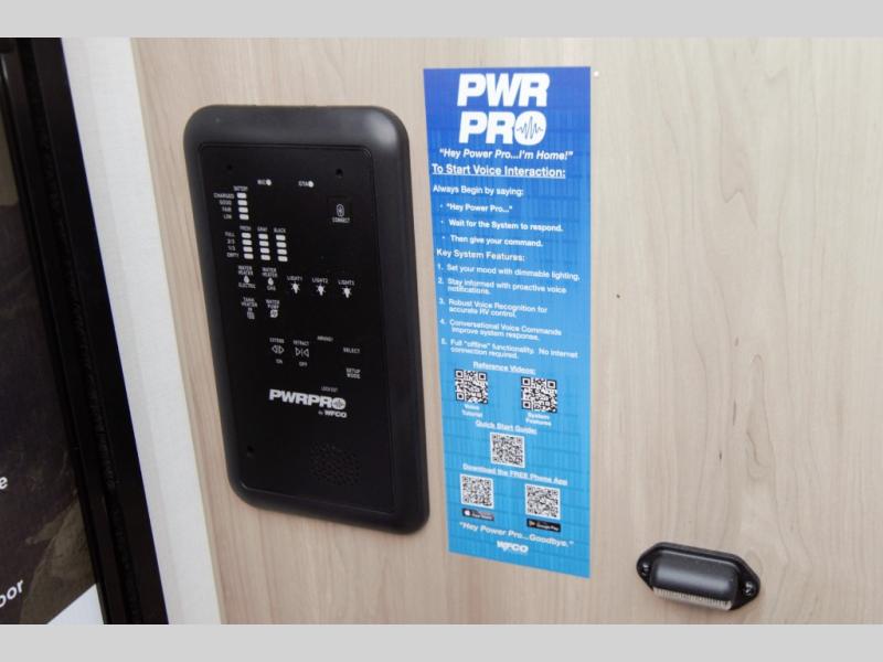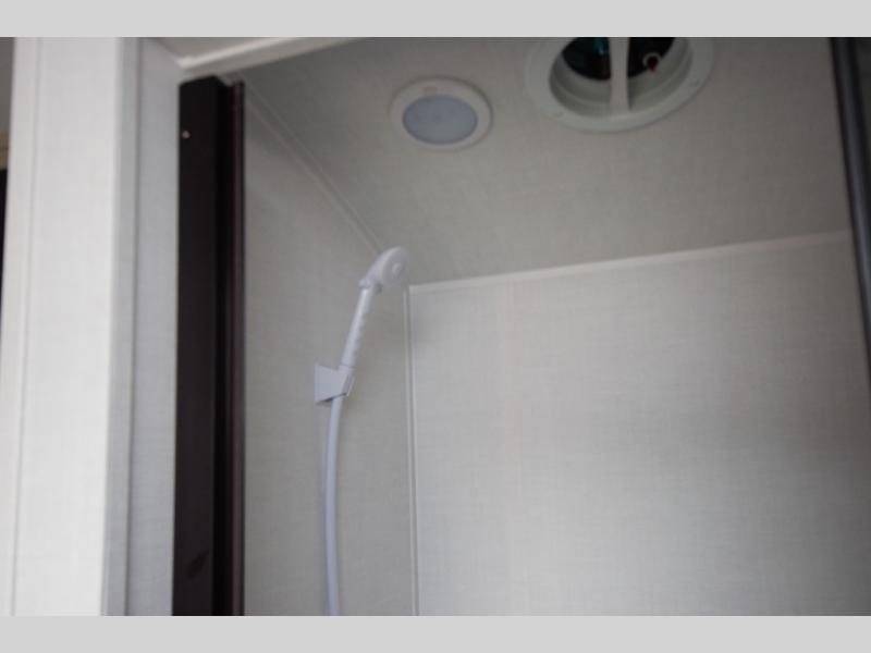 The well equipped kitchen includes a three burner cooktop, convection microwave, and a 12V refrigerator. Inside storage compartments and exterior storage give you room for all your gear, while the 10 foot power awning lets you relax outside in comfort.